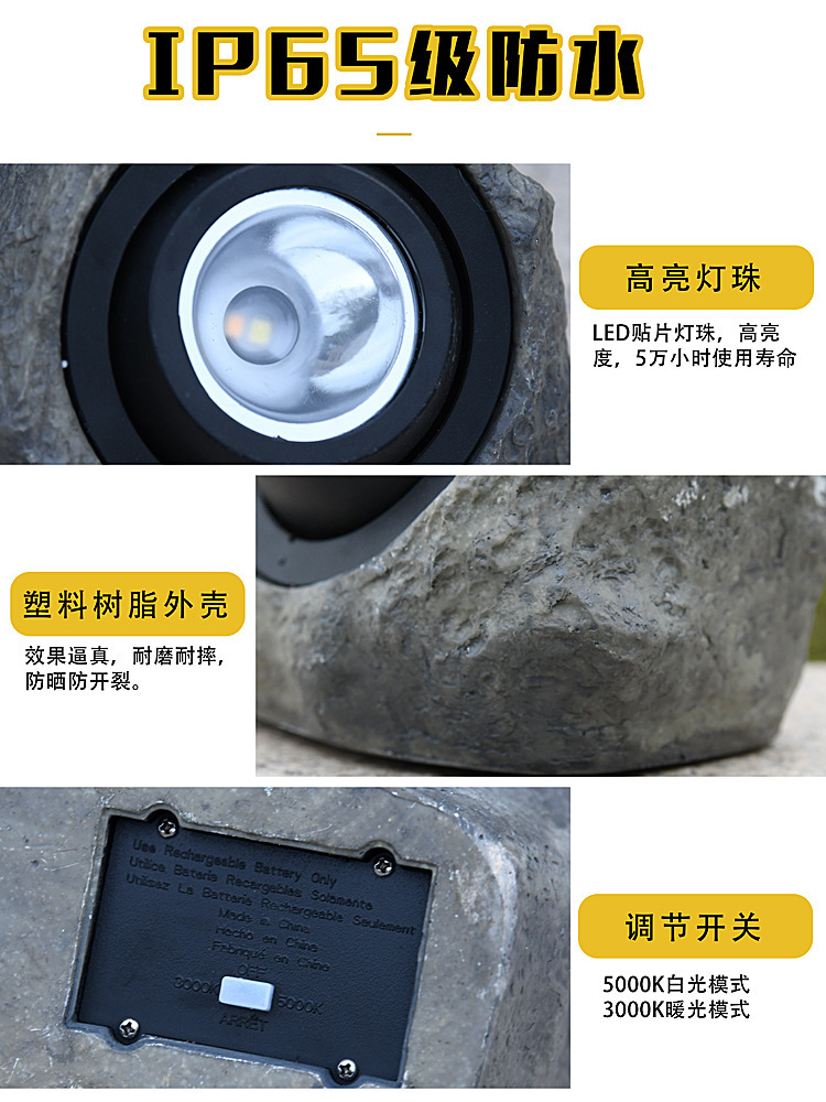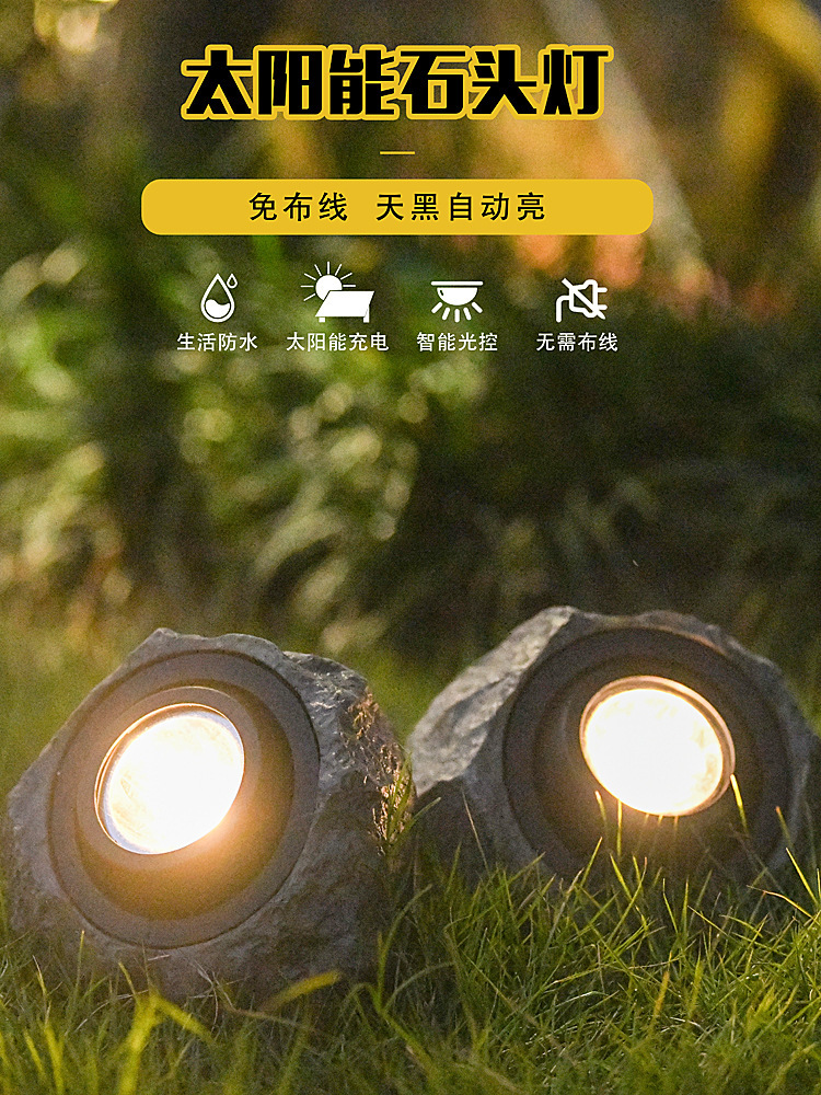 Đèn Sân Vườn Năng Lượng Mặt Trời Ngoài Trời Cảnh Quan Sân Vườn Đèn Nhựa Chống Thấm Nước Mô Phỏng Đá Đèn Led Bãi Cỏ Cây Ánh Sáng