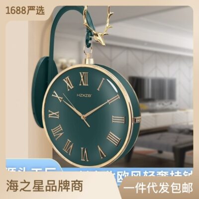 Đèn sang trọng Fulu 2 mặt đồng hồ treo tường thạch anh nhà thời trang hiện đại im lặng đồng hồ treo tường phòng khách cá tính trang trí sáng tạo