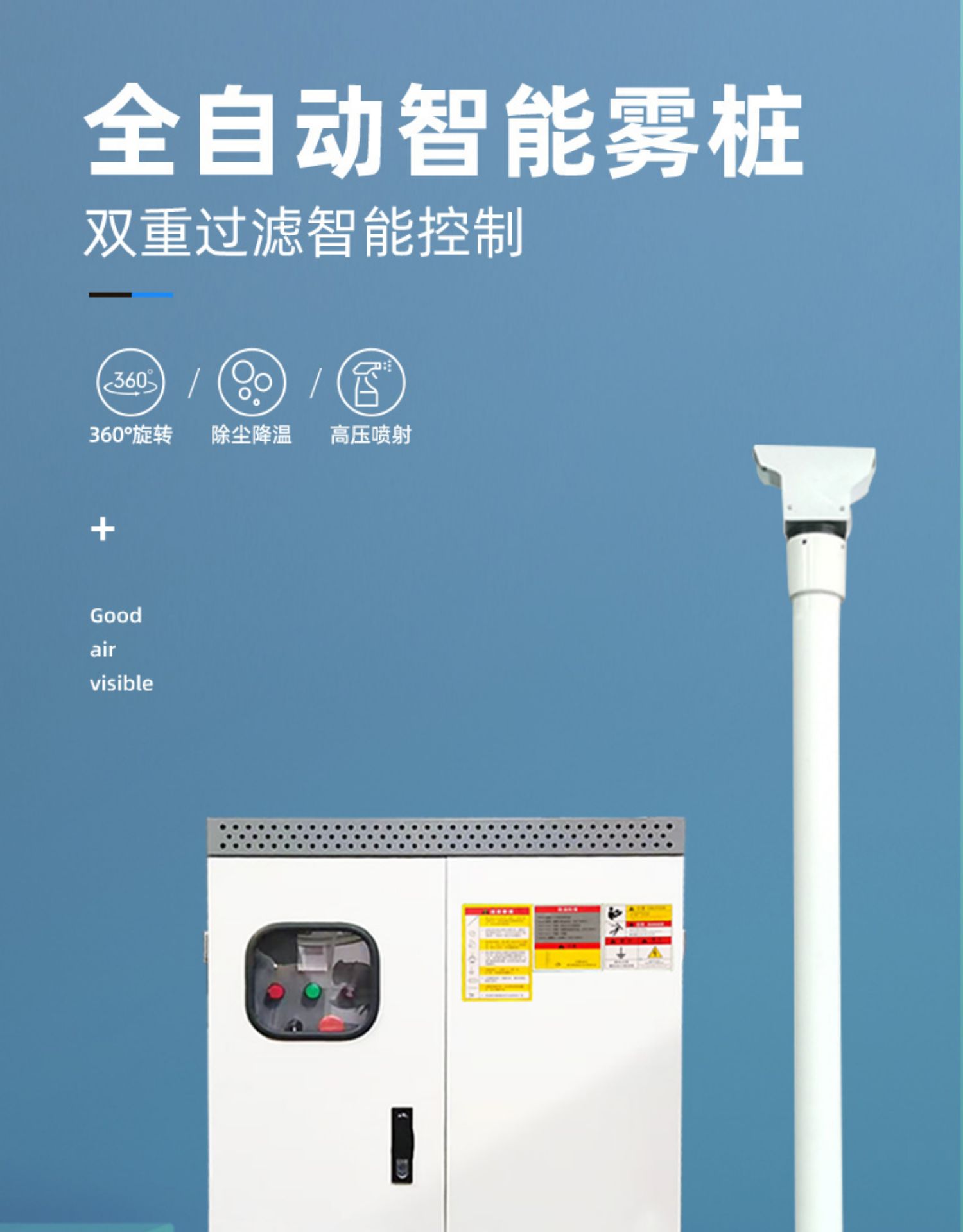 Trạm trộn mỏ cọc sương mù xoay 360 ° áp suất cao công trường xây dựng cột đèn đường Hệ thống phun bao vây ngăn chặn bụi trên cao