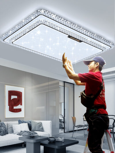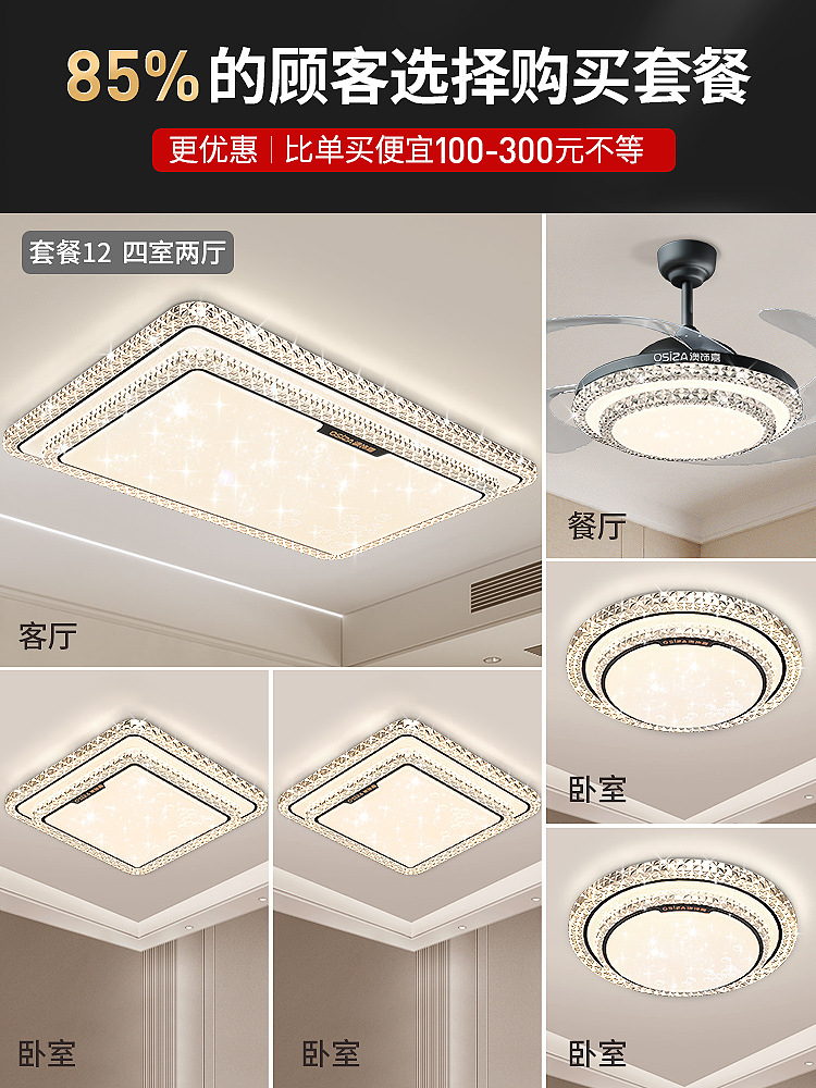 Đèn trần led pha lê phòng khách đèn pha hiện đại tối giản lưới mặt dây chuyền màu đỏ đèn phòng ngủ kết hợp trọn gói ngôi nhà