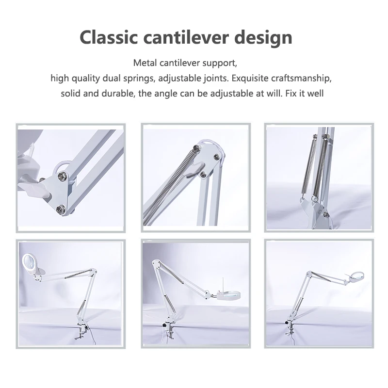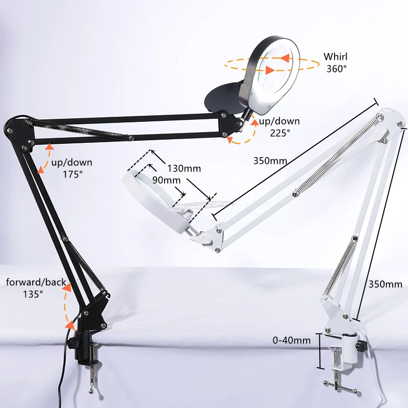2.The lamp head can be adjusted up and down, and 360 ° swivel. 35cm+35cm retractable long arms,180° can be adjusted.