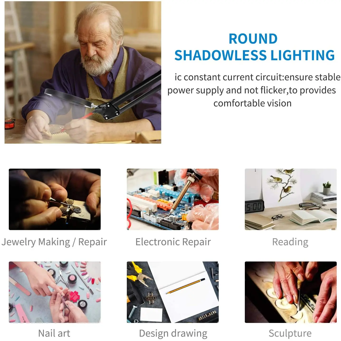 4.Suitable for reading working/ computer boards/ jewelry makers/ arts crafts hobbyists/welding rework/skincare beauty,it can be used universally.