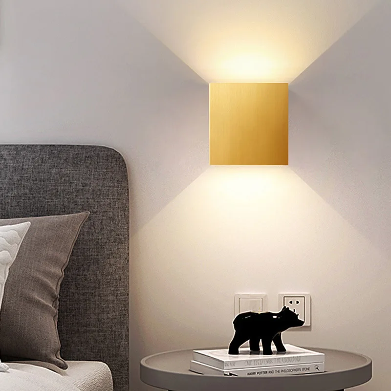 Indoor LED Wall Lamp Aluminium Cube Style Gold Silver Wall Light For Bedroom Living Room Corridor Aside Lighting AC110V 220V