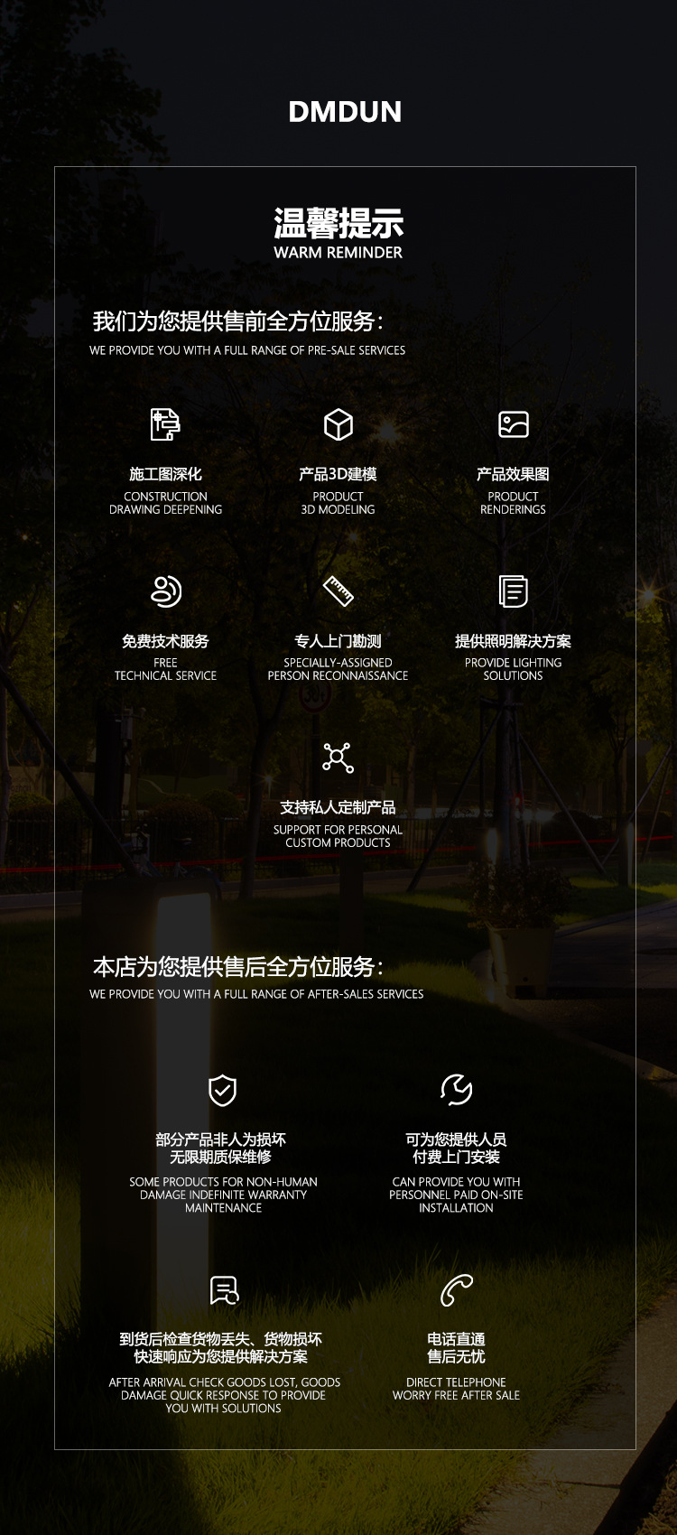 Đèn trụ cột năng lượng mặt trời, đèn sân ngoài trời, đèn trụ cửa, đèn trụ cửa biệt thự, đèn trụ sân, đèn sàn ngoài trời hàng rào. Quý khách có nhu cầu mua Đèn ngoài trời nhập khẩu vui lòng liên hệ với chúng tôi để được tư vấn hỗ trợ. Dịch vụ mua hàng Trung Quốc sẽ hỗ trợ quý khách mua hàng từ nhà cung cấp và giao tới tận tay quý khách hàng..Model: DYZT-AA01 Phạm vi ứng dụng chính: Thích hợp cho mọi cảnh ngoài trời Bằng sáng chế hay không: Không Chứng nhận: Không Số đơn hàng: ZT001 Chất liệu: Kính + nhôm Tùy chỉnh gia công: Có Cho dù đó là để xuất khẩu xuyên biên giới Nguồn cung cấp: Có Chiếu sáng liên tục thời gian: hơn 36 giờ Nơi xuất xứ: Hàng Châu, Chiết Giang Mã hàng: DYZT-AA01 Thương hiệu: DMDUN Thương hiệu hạt đèn: OSRAM/PHILIPS/CREE Các nền tảng hạ nguồn chính: eBay/Amazon/wish/AliExpress/Independent Station/LAZADA/Khác /Khác với thương hiệu tư nhân được ủy quyền : Có Người nộp thuế chung: Có Công suất nguồn sáng: 24W Loại nguồn sáng: LED Cấp bảo vệ: IP65 Điện áp: 220V/24V/12V Kích thước: Kính sọc Changhong 250MM (loại kết nối điện)/Kính sọc Changhong 250MM ( loại năng lượng mặt trời)/Kính sọc Changhong 300MM (loại điện)/Kính sọc Changhong 300MM (loại năng lượng mặt trời)/Kính sọc Changhong 400MM (loại điện)/Kính sọc Changhong 400MM (loại năng lượng mặt trời)/Kính sọc Changhong 500MM (loại điện)/Changhong kính sọc 500MM (mô hình năng lượng mặt trời)/Kính sọc Changhong 500MM (mô hình năng lượng mặt trời) Phong cách: Phong cách công nghiệp hiện đại mới của Trung Quốc Khu vực bán hàng chính: Châu Phi/Châu Âu/Nam Mỹ/Đông Nam Á/Bắc Mỹ/Đông Bắc Á/Trung Đông/Khác/Khác Cho dù nhập khẩu: Không Loại: Đèn sân vườn năng lượng mặt trời+Đèn sân vườn LED