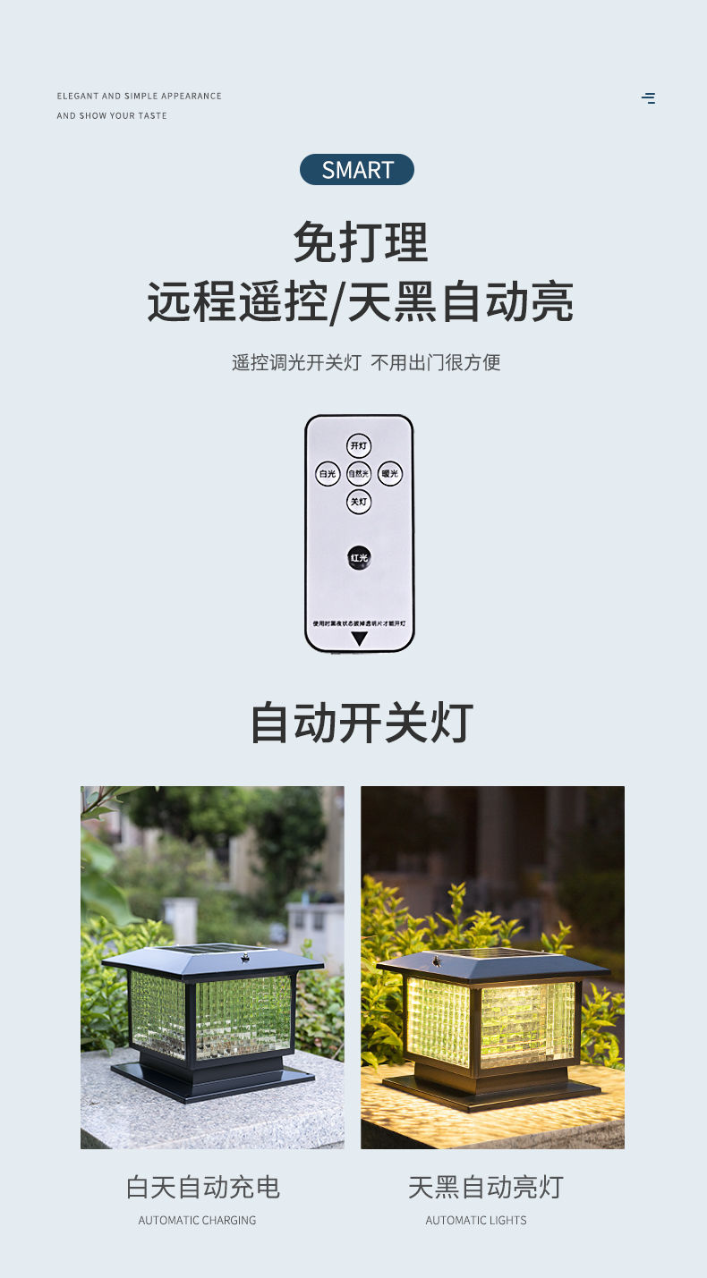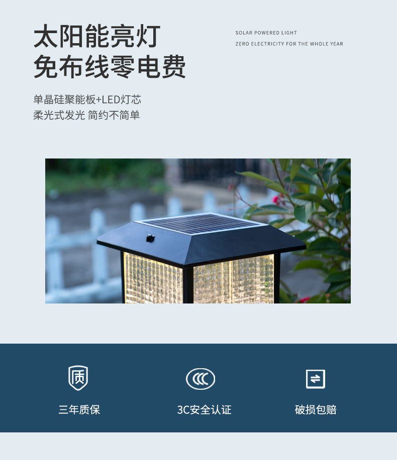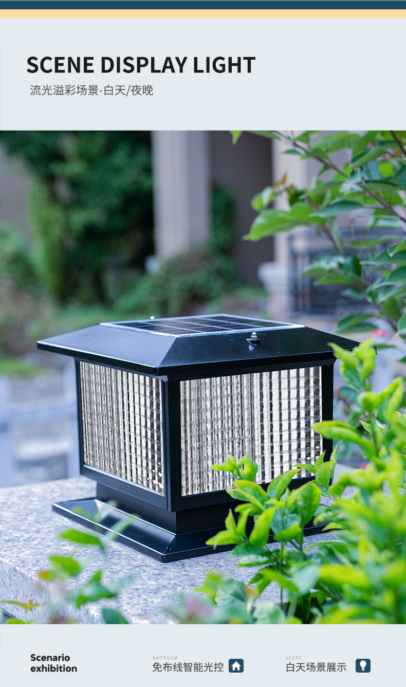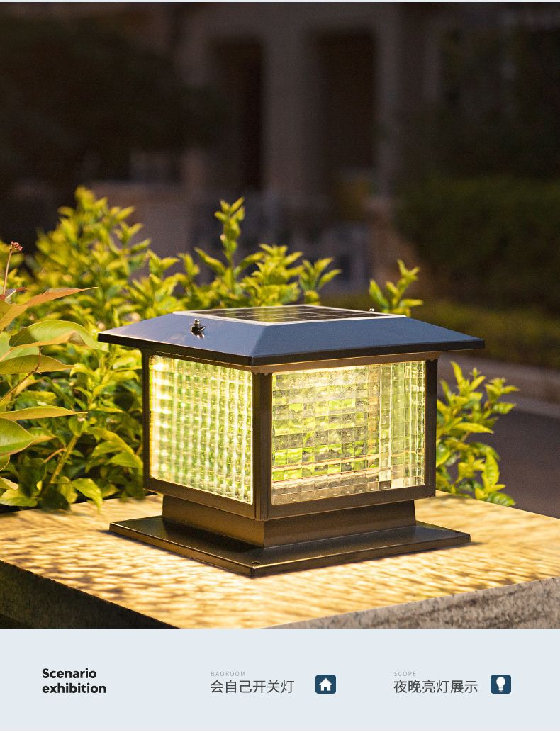 Đèn trụ hàng rào năng lượng mặt trời ngoài trời chống thấm nước đèn sân vườn biệt thự đèn trụ cổng sân tường đầu đèn trụ cổng