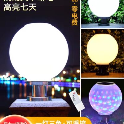 Đèn trụ tròn năng lượng mặt trời sân vườn ngoài trời biệt thự nông thôn cổng đèn tường bóng tròn trụ cổng đèn trụ