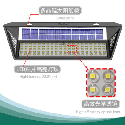 Đèn tường năng lượng mặt trời Đèn sân vườn ngoài trời năng lượng mặt trời Đèn tường sân vườn chống nước hình tam giác Ánh sáng mặt trời cảm ứng cơ thể con người