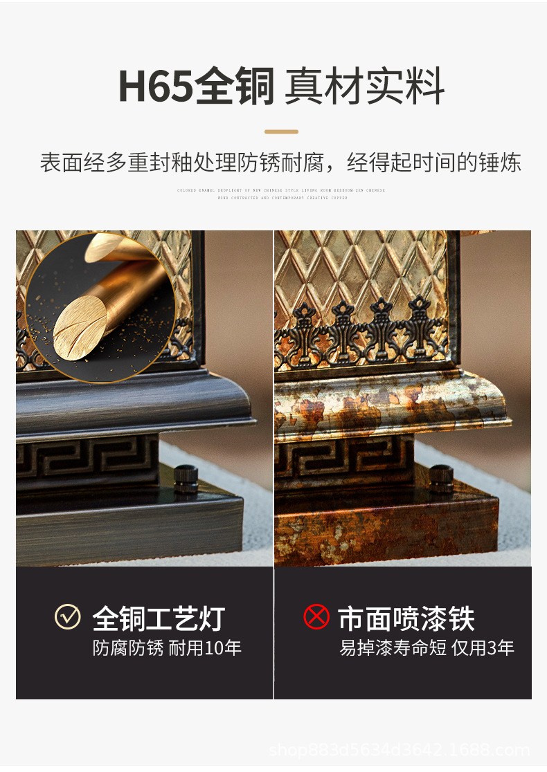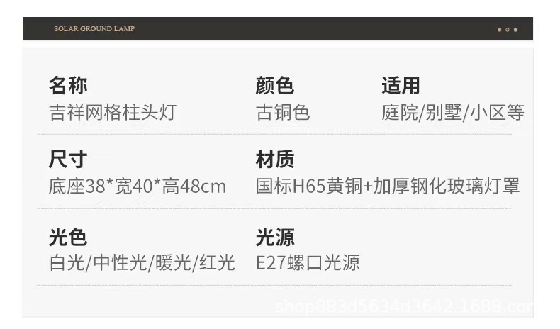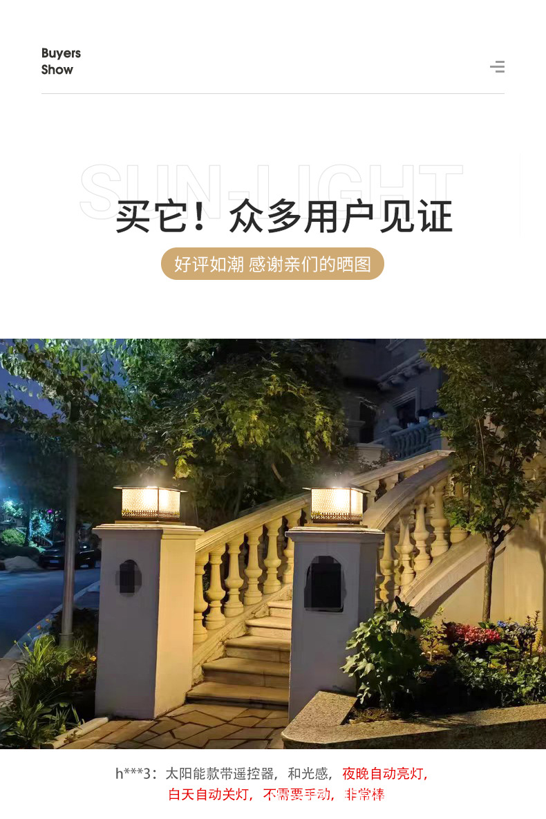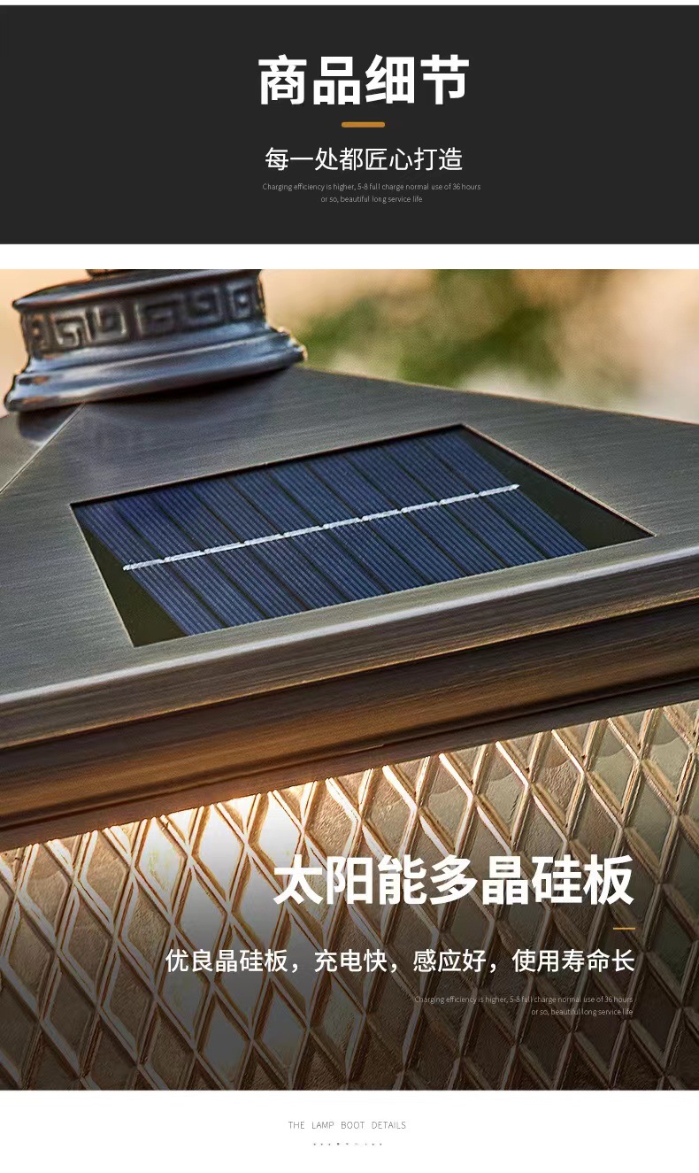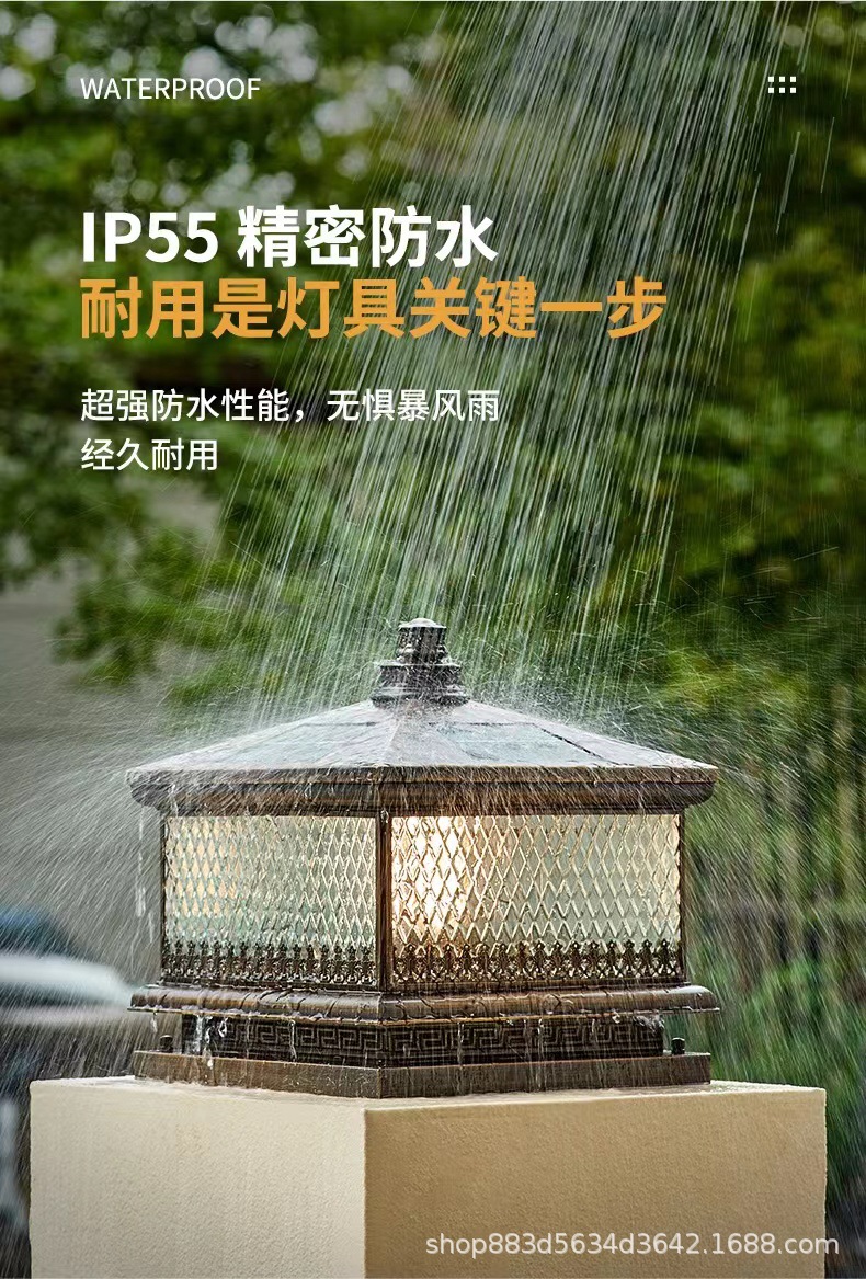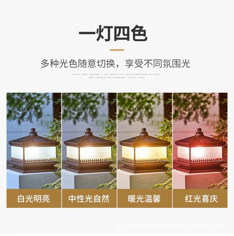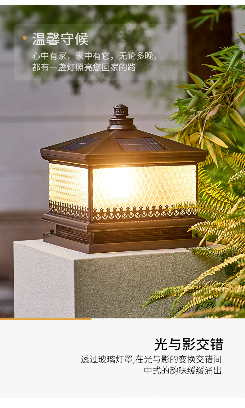 Đèn trụ cột năng lượng mặt trời hoàn toàn bằng đồng kết nối với điện ngoài trời cổng trụ chống nước đèn cổng biệt thự đơn giản đèn tường sân vườn