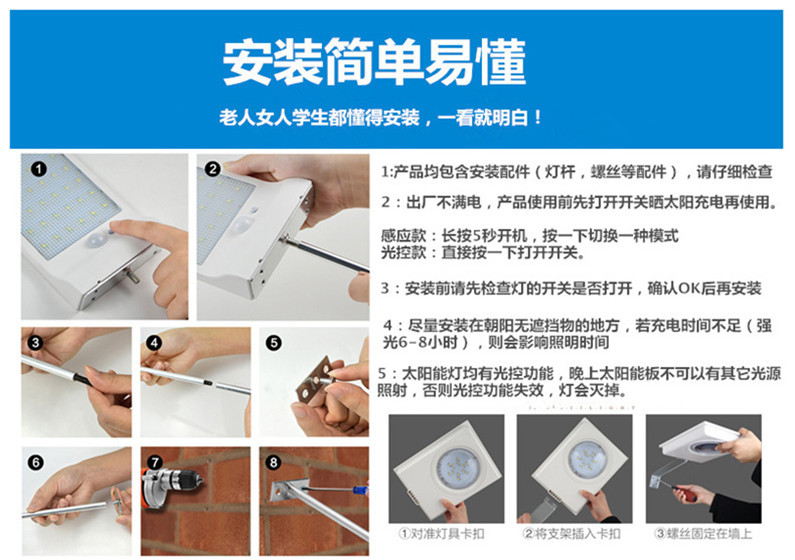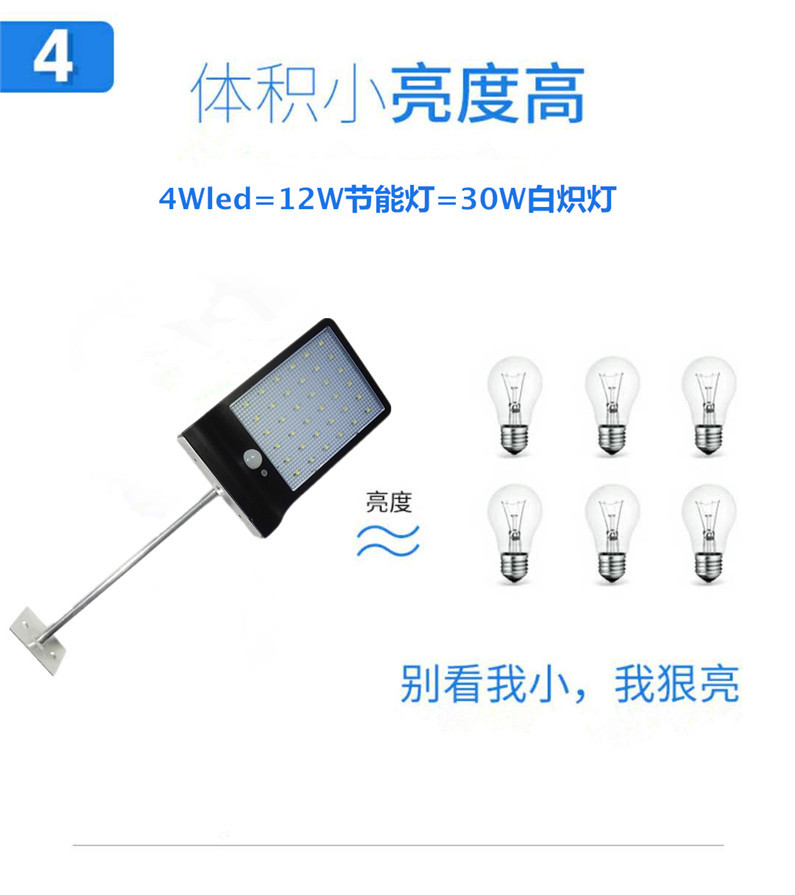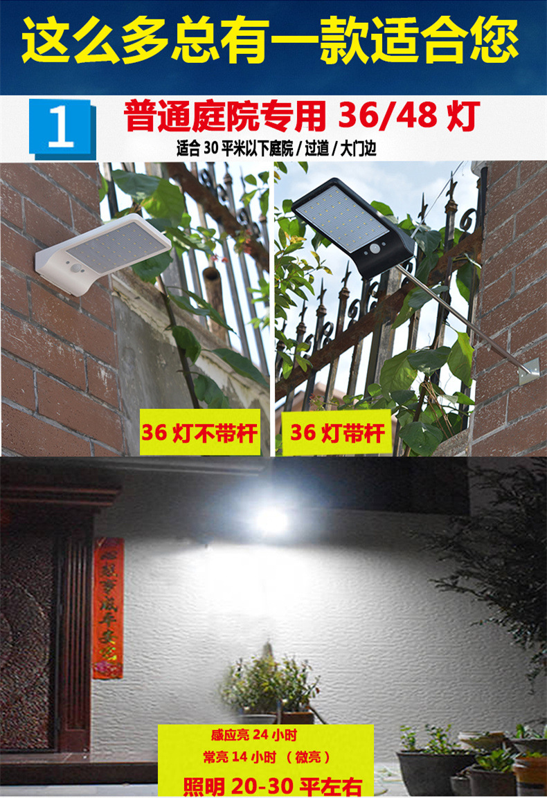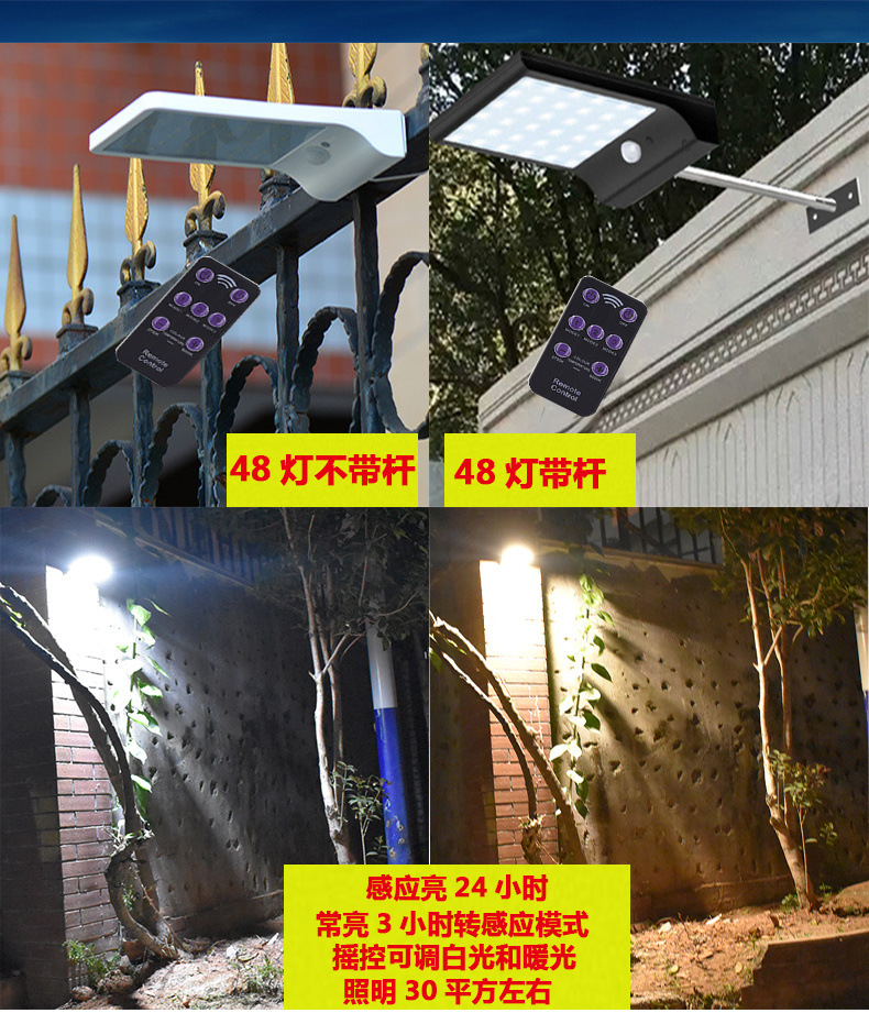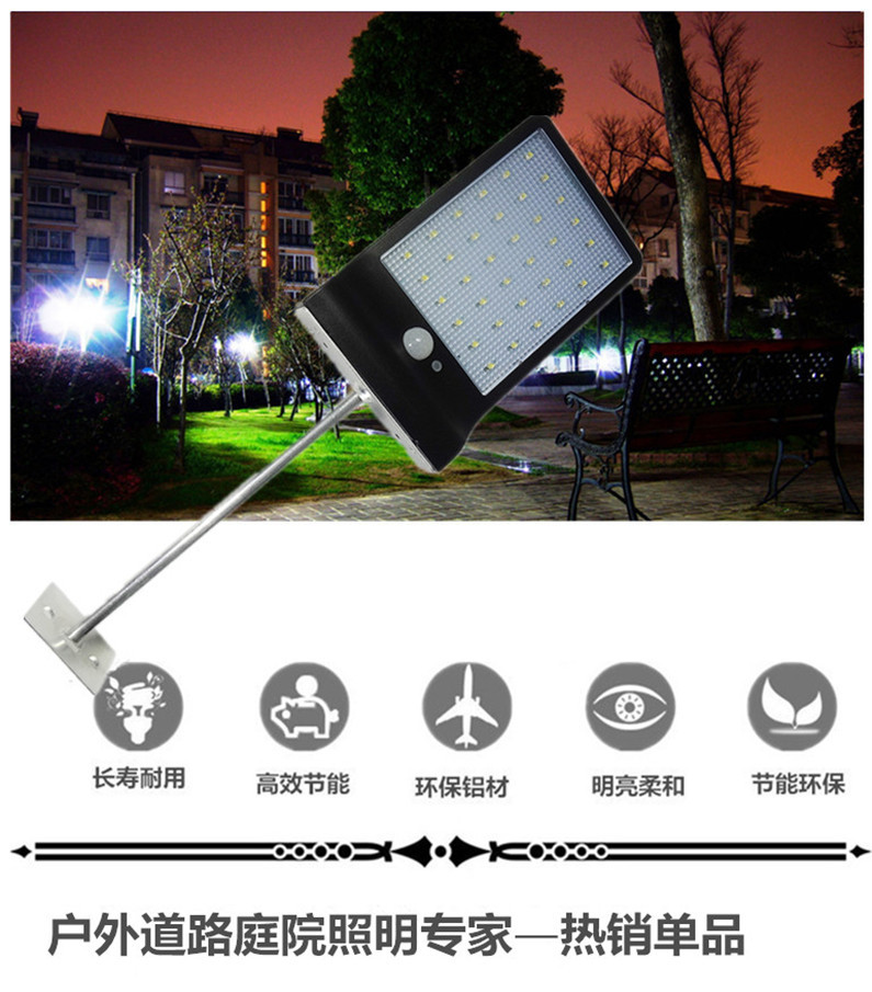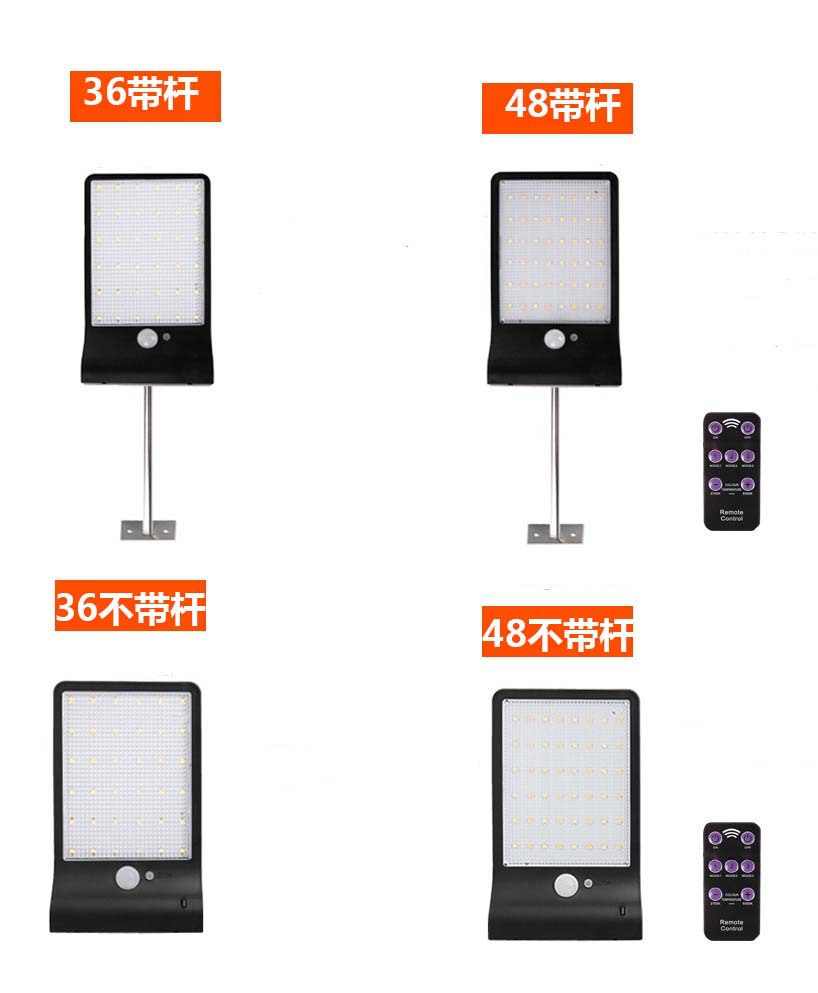 跨境专供36ed太阳能灯 户外太阳能壁灯光控感应庭院灯一体灯带杆