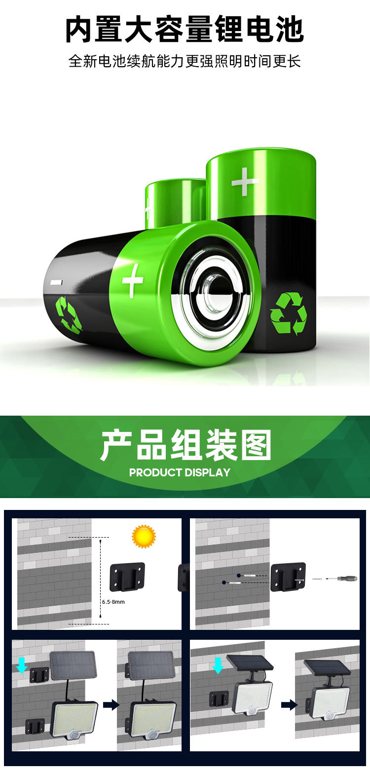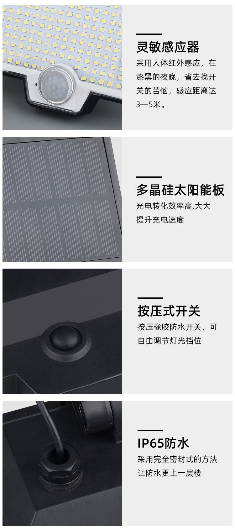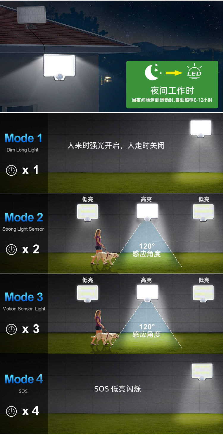 5.工作时间:充满电感应亮灯时间300次,3档常亮5-7小时
