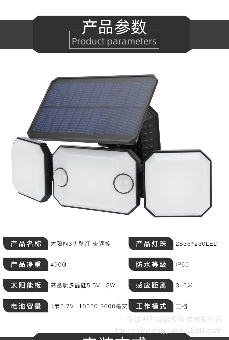 Mẫu tư nhân mới đèn tường năng lượng mặt trời 2 với cảm ứng kép năng lượng mặt trời ngoài trời ánh sáng sân vườn cơ thể con người cảm ứng ánh sáng nhà để xe