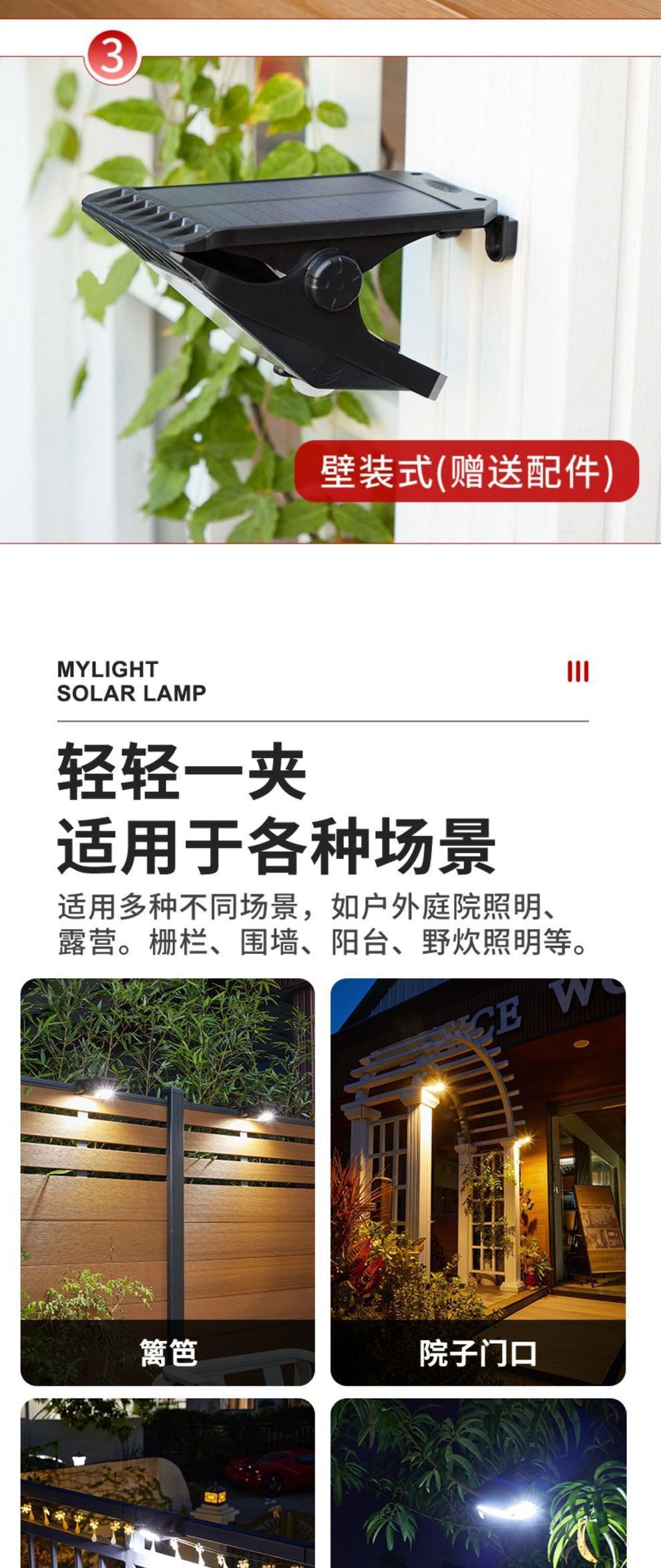 Clip năng lượng mặt trời ngoài trời đèn sân hàng rào nhà làm nổi bật cơ thể con người chiếu sáng cảm ứng ban công đèn tường sân vườn lô