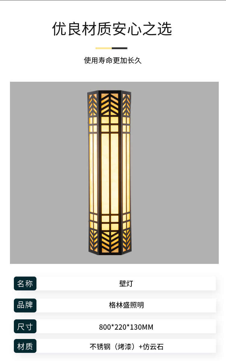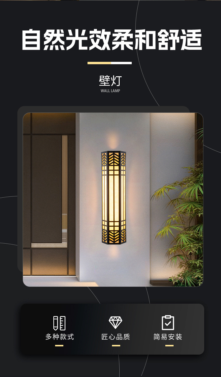 Đèn tường ngoài trời bằng đá cẩm thạch LED Công viên khu dân cư Đèn sân biệt thự Vuông Sắt nghệ thuật Chống nước ngoài trời Phong cách Trung Quốc mới