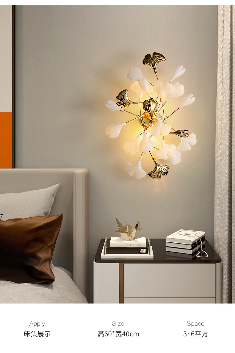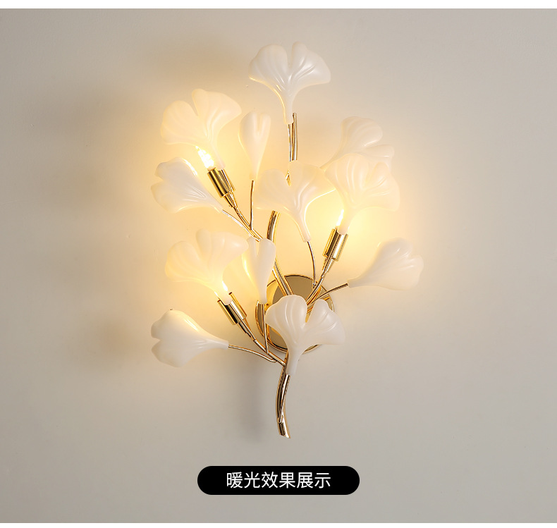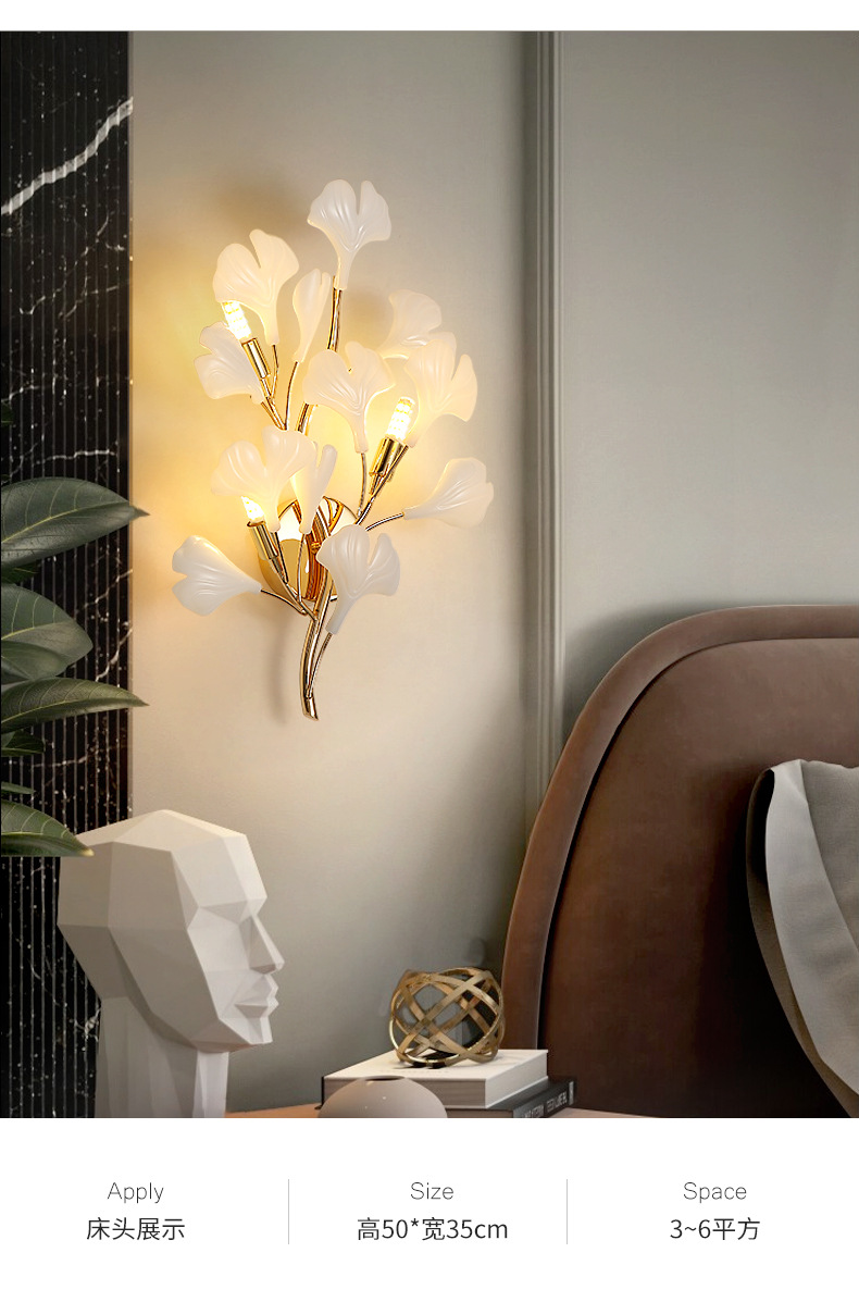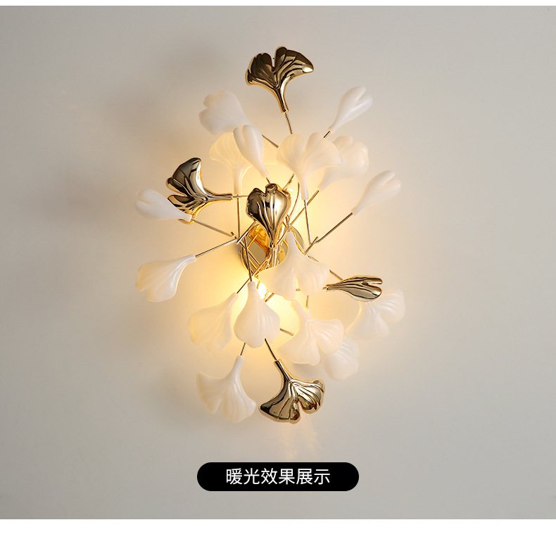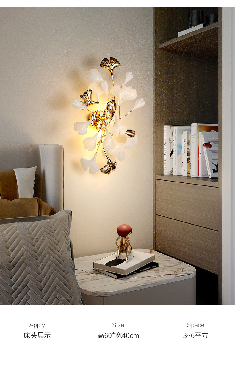 Đèn tường phòng ngủ đèn cạnh giường ngủ nghệ thuật sáng tạo lá bạch quả nền tường phòng khách đèn led ánh sáng trên hành lang sang trọng đèn