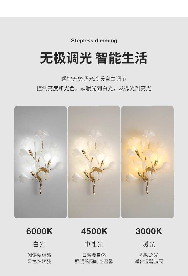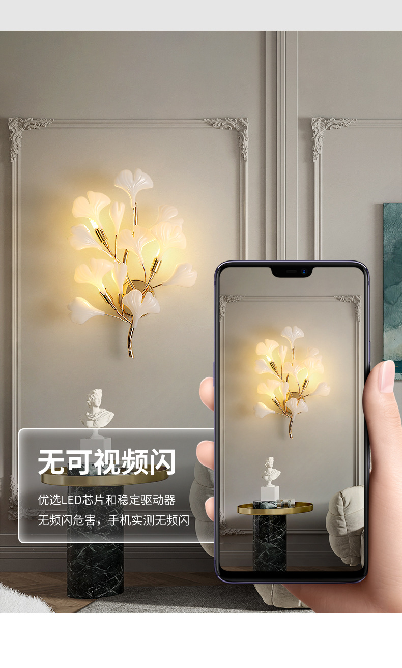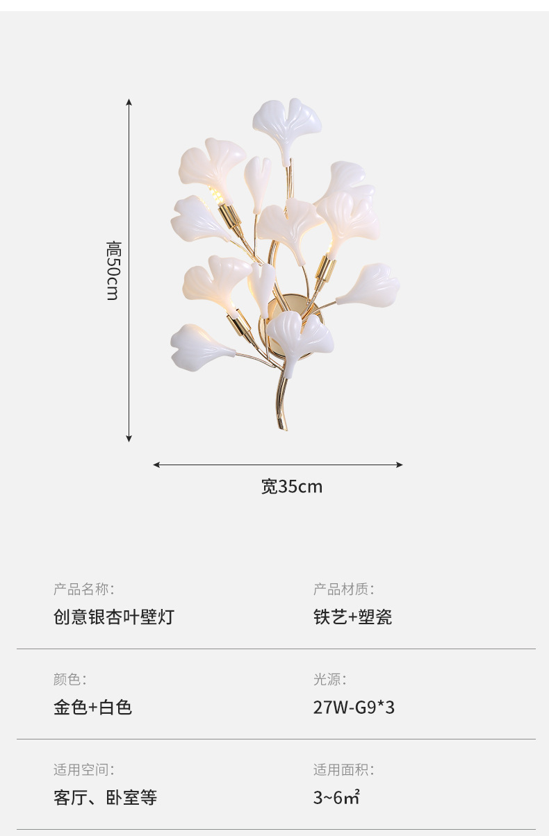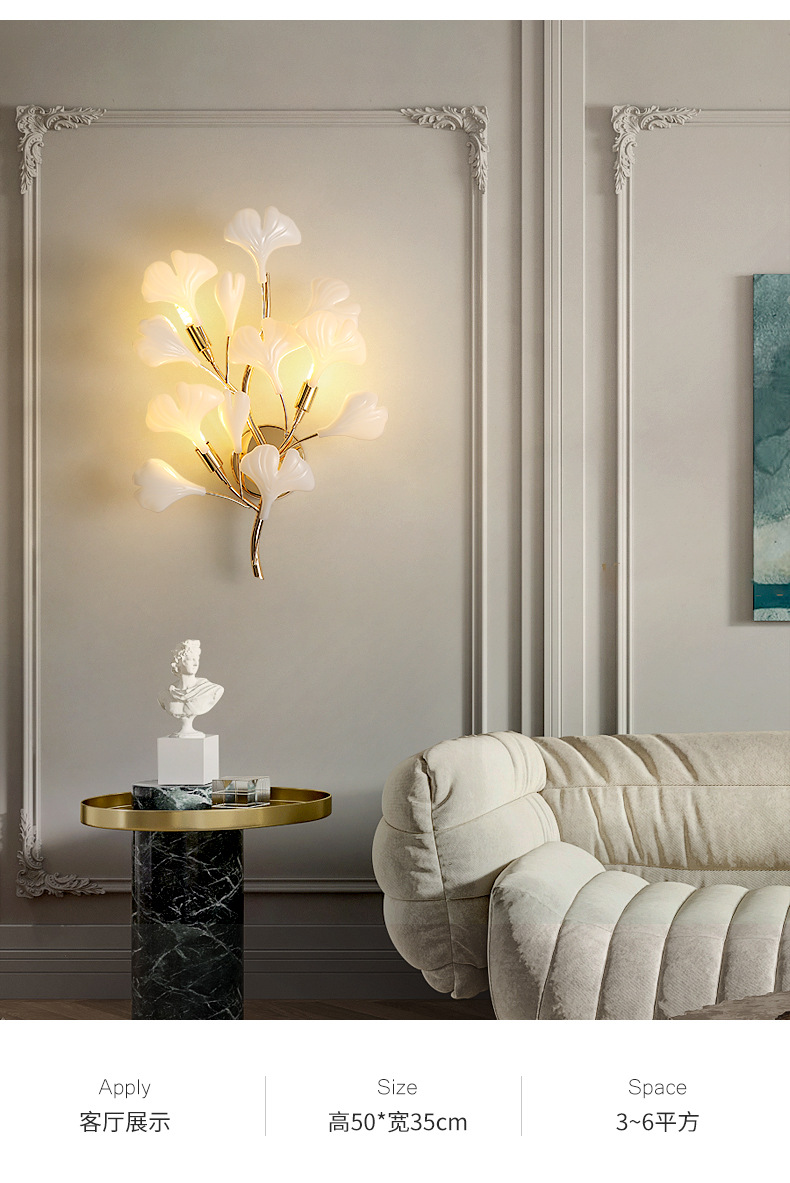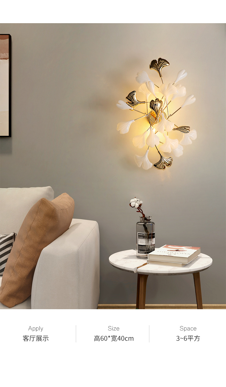 Đèn tường phòng ngủ đèn cạnh giường ngủ nghệ thuật sáng tạo lá bạch quả nền tường phòng khách đèn led ánh sáng trên hành lang sang trọng đèn