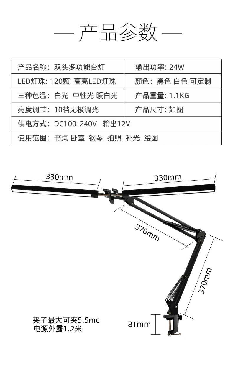 Đèn Văn Phòng Sáng Đèn Bàn LED Kẹp Cánh Tay Dài Để Bàn Linh Hoạt Bảo V – DDB-304