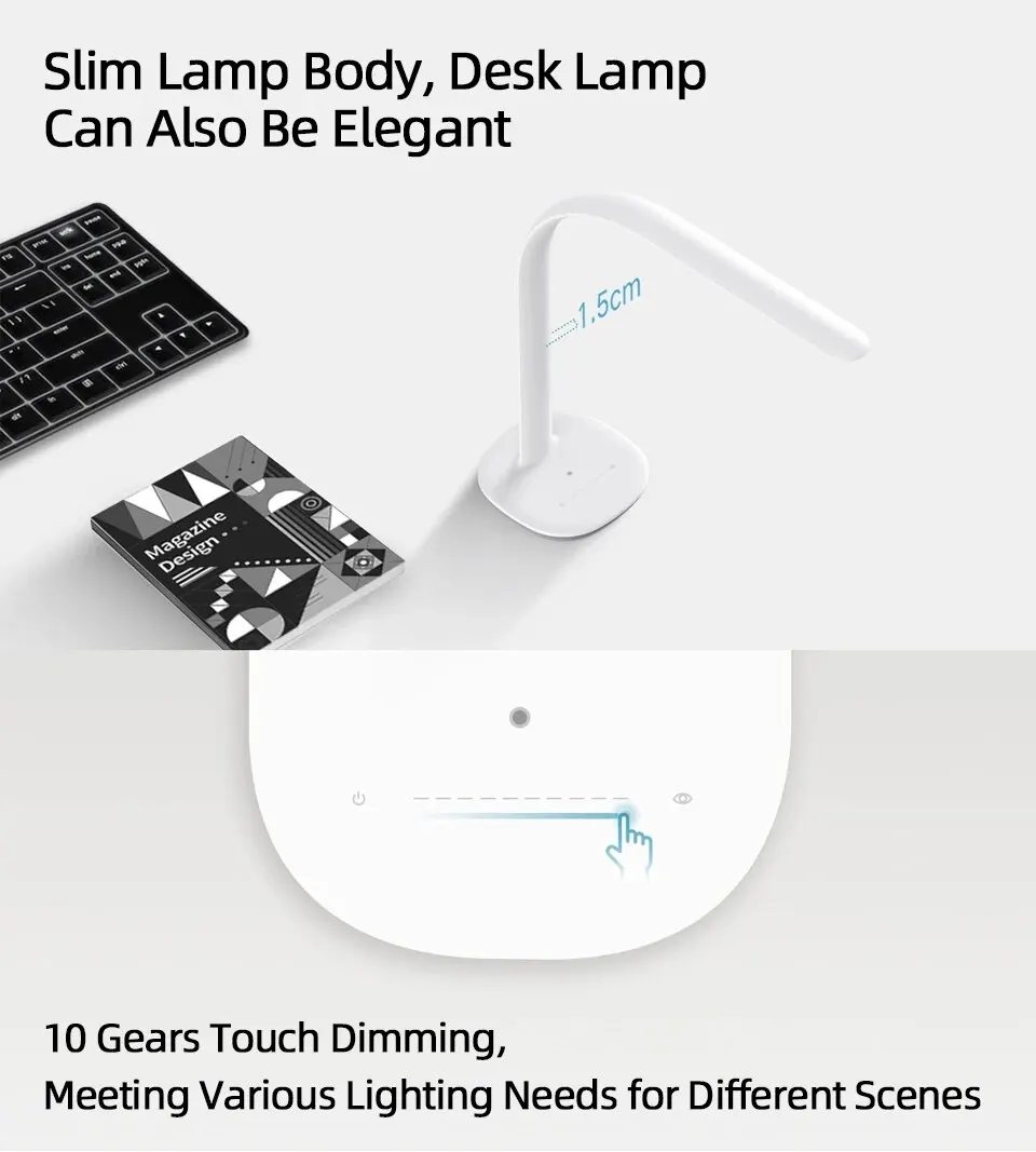 Mi Home Philips Desk Lamp 3 has undergone comprehensive craftsmanship enhancement, with a lamp arm thickness of only 1.5cm, presenting a more elegant and chic appearance.10 Gears Touch Dimming, Meeting Various Lighting Needs for Different Scenes