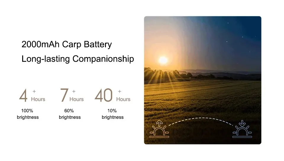 With a high-capacity 2000mAh battery, the lowest brightness setting provides a continuous runtime of over 40 hours*, ensuring resilience against dormitory power outages and offering enduring, bright companionship.