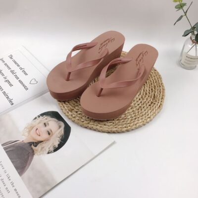 Dép cao gót phong cách mới dành cho nữ mùa hè phù hợp với tất cả các loại dép đế dày 7,5 cm dép xỏ ngón đế xuồng đi biển bên bờ biển dép chống trượt