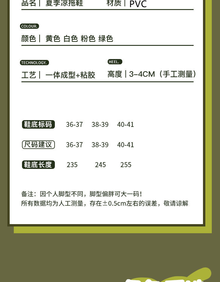 Hoa văn: Phim hoạt hình Nguồn Thể loại: Spot Chất liệu bên trong: PVC Cho dù ngoại thương: Không Loại sản phẩm: Baotou Màu sắc: Quái vật mắt to-Xanh lá cây/Quái vật mắt to-Trắng/Quái vật mắt to-Vàng/Quái vật mắt to-Hồng/Quái vật mắt to- -Đen/Quái vật mắt to–Đen Hàng tồn kho: Có Kích thước: 36-37/38-39/40-41/40-41 Quy trình đế: Ép giày Đơn vị kiểm tra chất lượng: sgs Chất liệu đế: PVC Xuất khẩu xuyên biên giới -nguồn cung cấp duy nhất: Không Các yếu tố phổ biến: 1327355784 Báo cáo kiểm tra chất lượng: Không Phương pháp đóng: Thẳng qua: Người lớn Chức năng: Chống nước/Trọng lượng nhẹ/Nhẹ Năm niêm yết Mùa (Thời gian lên danh sách): Mùa hè 2023 Phong cách: Nữ Thời gian giao hàng mới nhất: 4-7 ngày