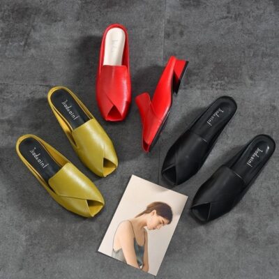 Dép da nửa kéo miệng cá dép đi trong nhà mùa hè 2023 cho nữ Xăng đan đi chơi đế mềm đế thấp cỡ lớn Xăng đan mùa hè cỡ lớn