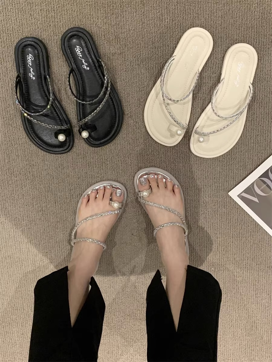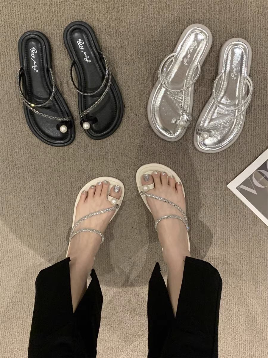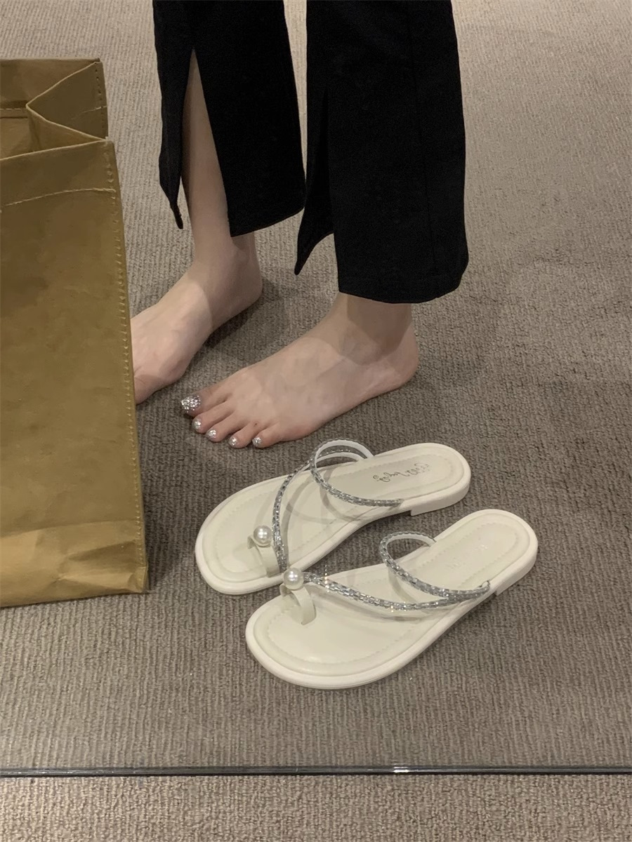 Dép đế bệt nữ mùa hè 2023 dép đi biển ngọc trai mới cao cấp nước hoa nhỏ phong cách Pháp kèm váy xăng đan