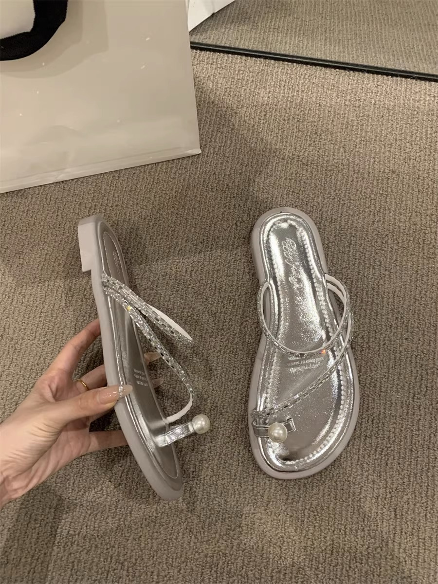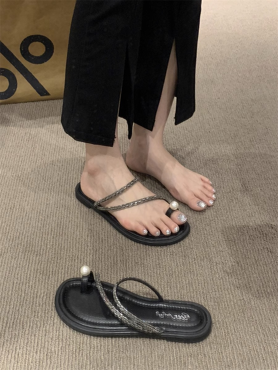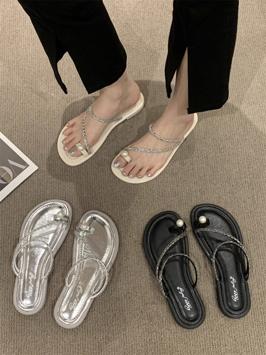 Dép đế bệt nữ mùa hè 2023 dép đi biển ngọc trai mới cao cấp nước hoa nhỏ phong cách Pháp kèm váy xăng đan