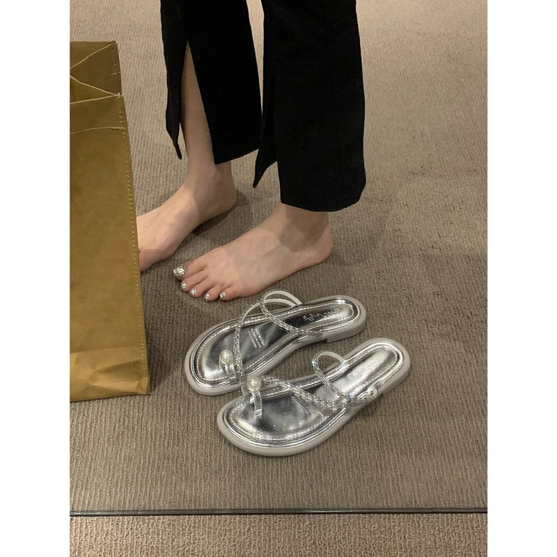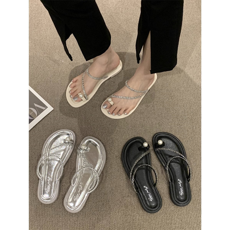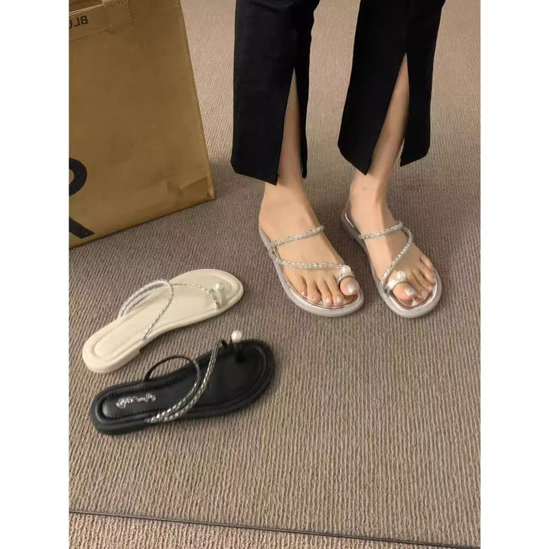 Dép đế bệt nữ mùa hè 2023 dép đi biển ngọc trai mới cao cấp nước hoa nhỏ phong cách Pháp kèm váy xăng đan