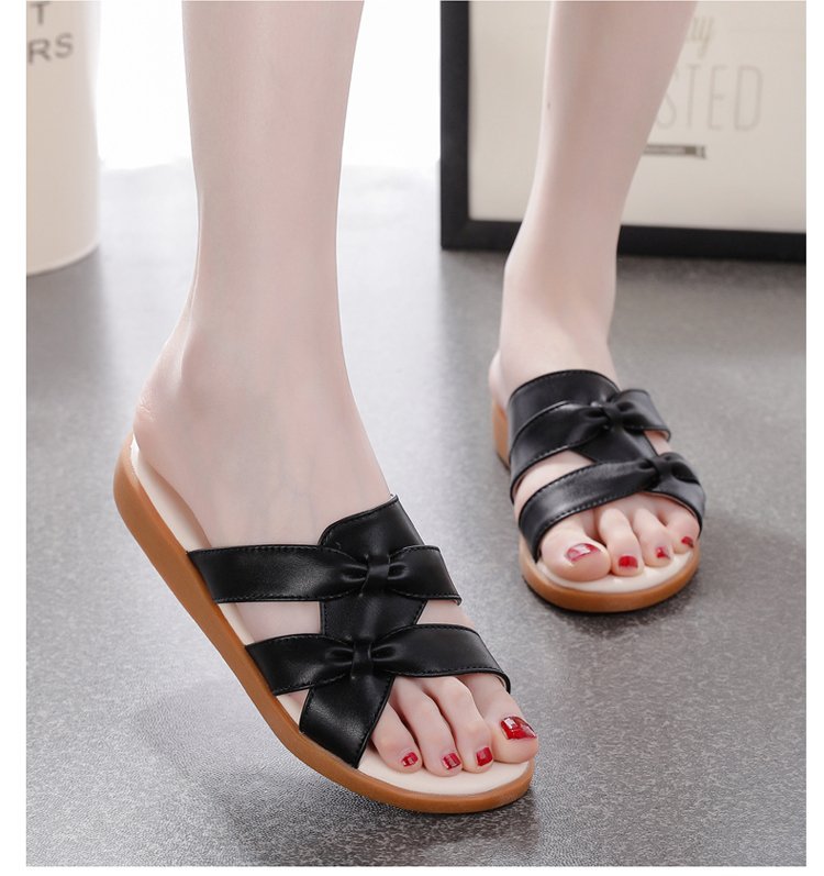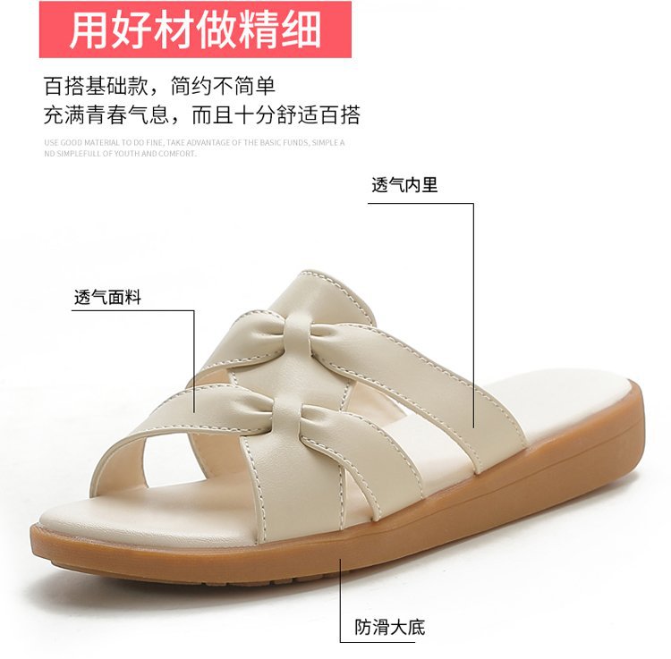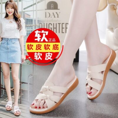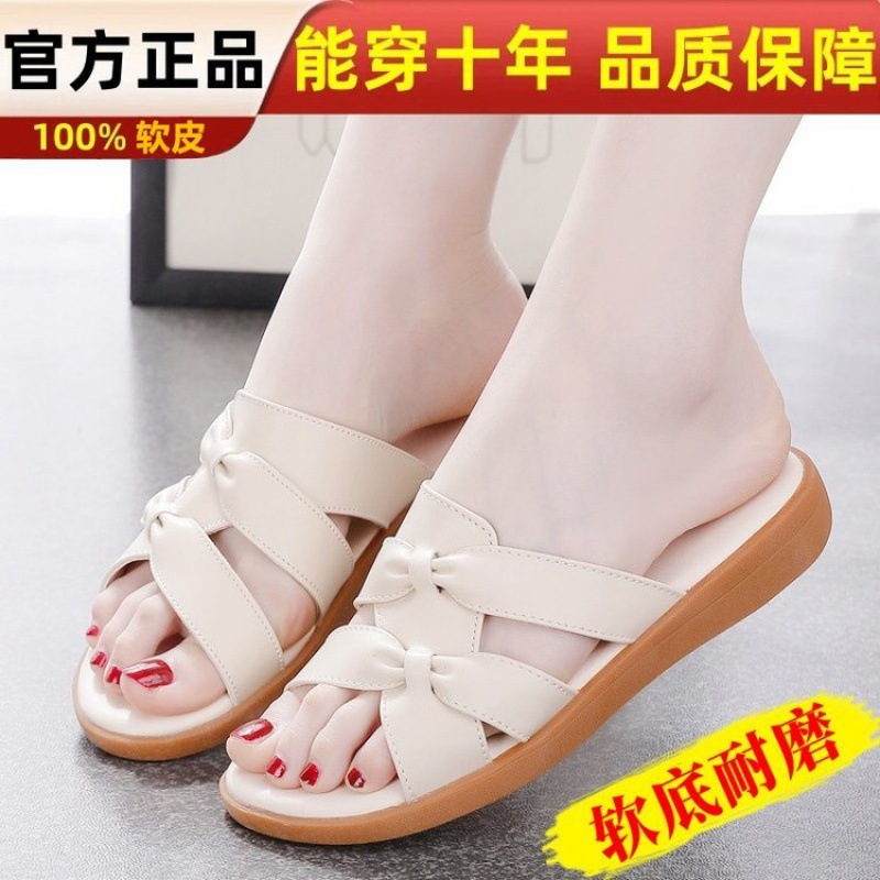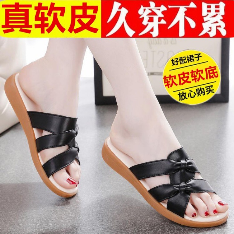 Dép đi trong nhà bằng da mềm mới dành cho nữ mùa hè đế mềm mặc ngoài trời phụ nữ mang thai trung niên và người cao tuổi dép nữ đế bằng cỡ lớn
