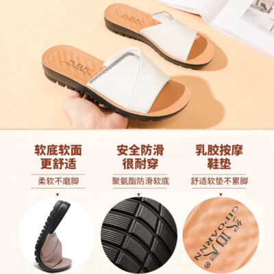 Dép đi trong nhà mùa hè mới của phụ nữ mang đế mềm chống trượt 2023 dép bằng da cho người trung niên và người già đế bằng