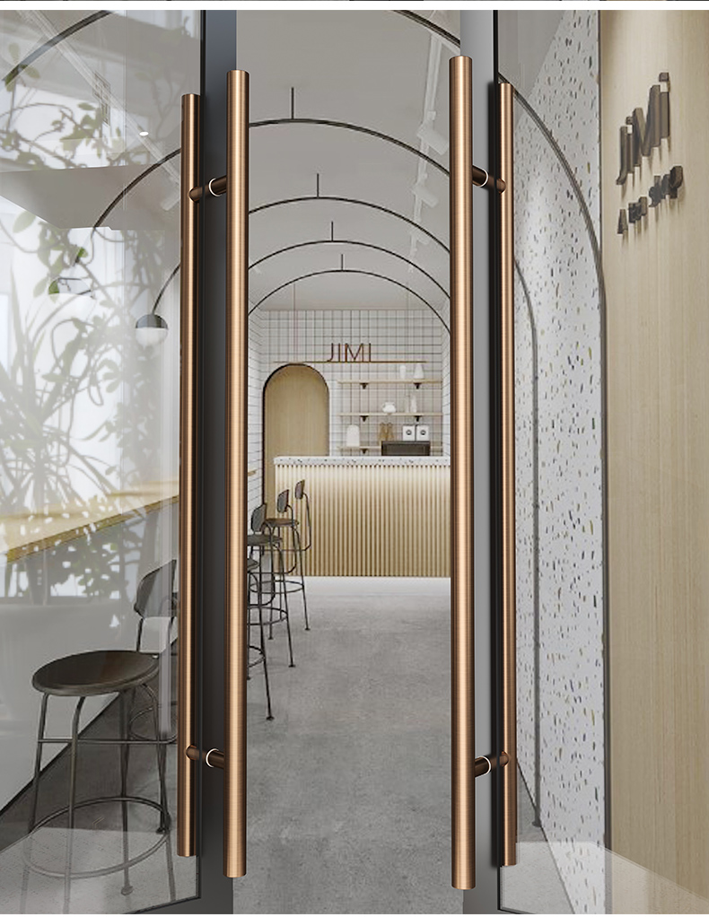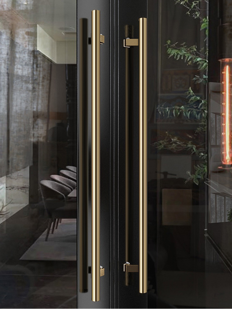 Đẹp đơn giản sang trọng thép không gỉ mạ vàng Tay nắm cửa kính hộp cửa hàng khách sạn Tay nắm cửa dày tay cầm màu đen