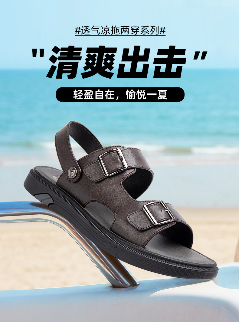 Dép lạc đà Nam Da thật Lớp da trên cùng Mùa hè Công sở Thường Dịu Đế mềm Da mềm Giày đi biển của Nam Mùa hè