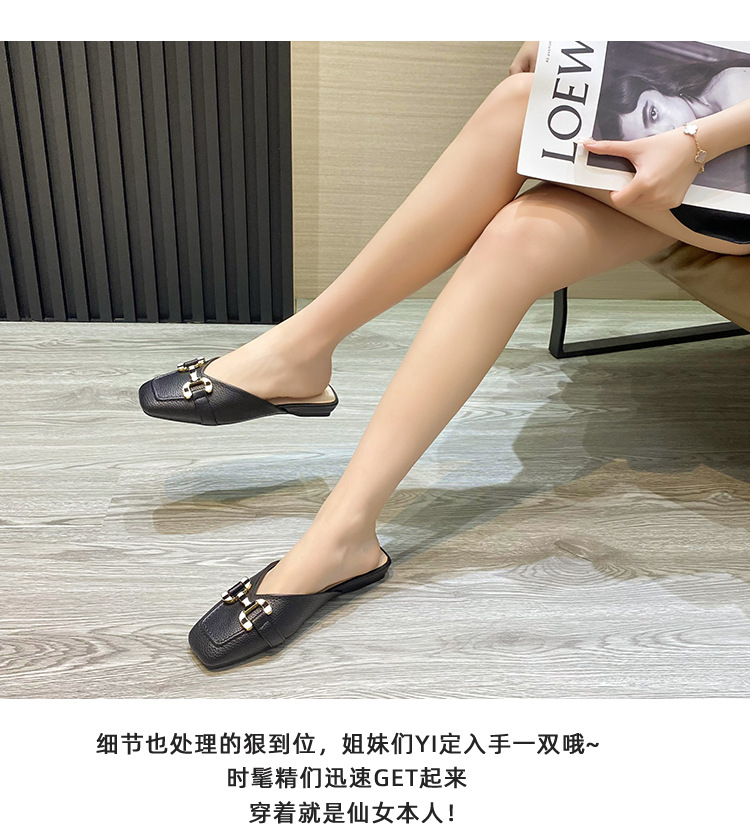 Dép Nữ Mặc Ngoài 2023 Mới Bằng Phẳng Bao Đầu Lười Giày Mùa Hè Nữ Giày Xăng Đan Nữ Giày Muller