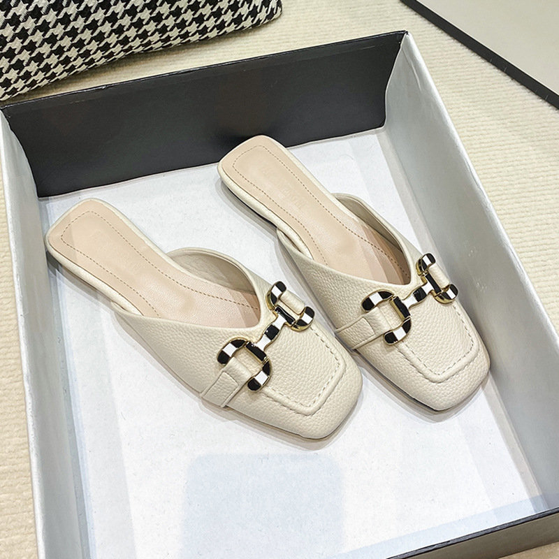 Dép Nữ Mặc Ngoài 2023 Mới Bằng Phẳng Bao Đầu Lười Giày Mùa Hè Nữ Giày Xăng Đan Nữ Giày Muller