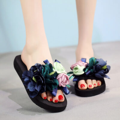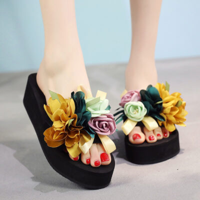 Dép Nữ Mùa Hè Mang Đế Dày Đi Biển Giày Đế Xuồng Cao Gót Đi Ra Ngoài Hoa Đi Biển Bánh Xốp Xăng Đan Thời Trang