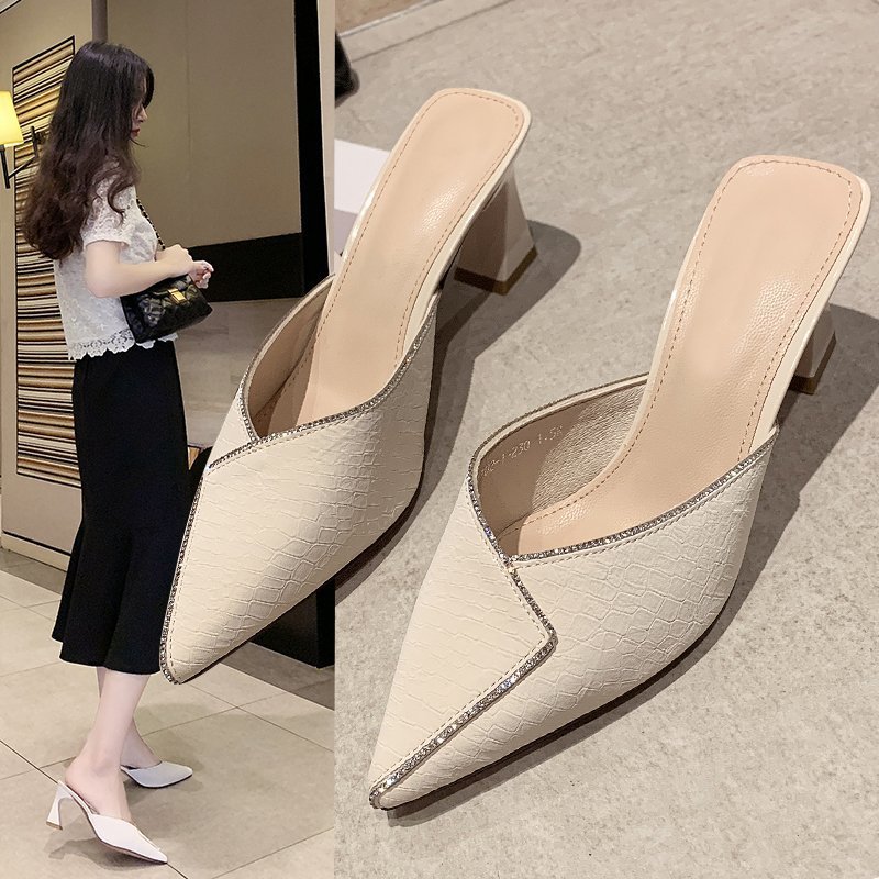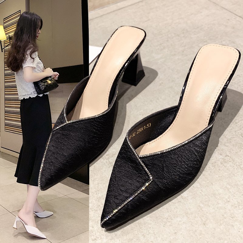 Dép nửa đầu đính đá Bao Đầu thời trang sinh viên áo khoác ngoài nữ mùa hè mới 2023 Xăng đan cao gót Muller ins thủy triều