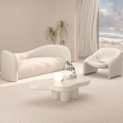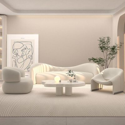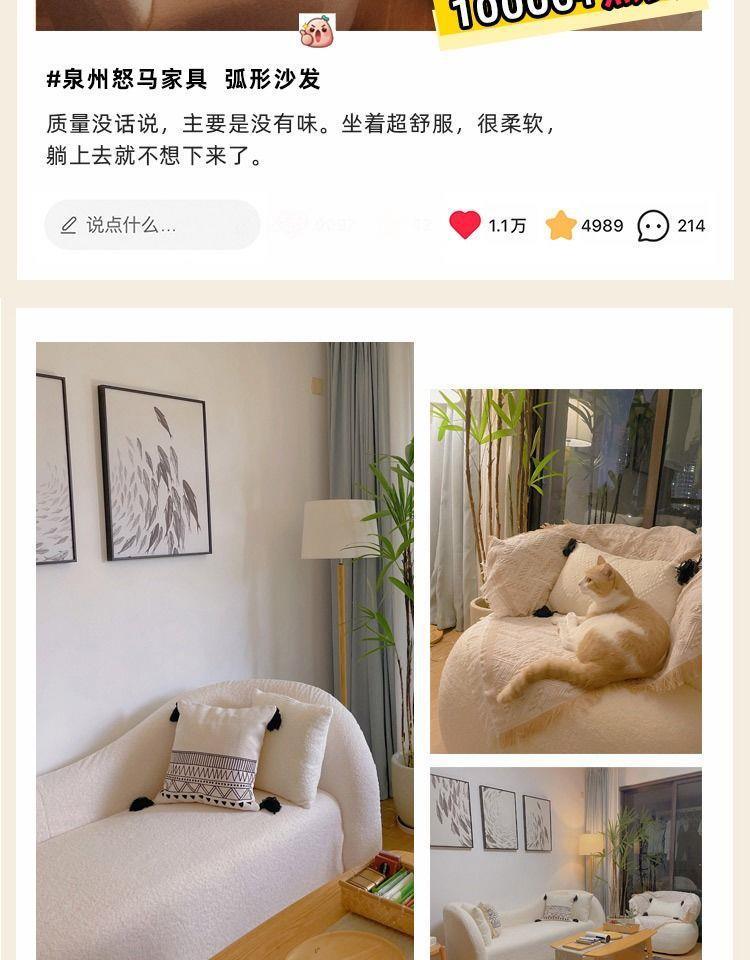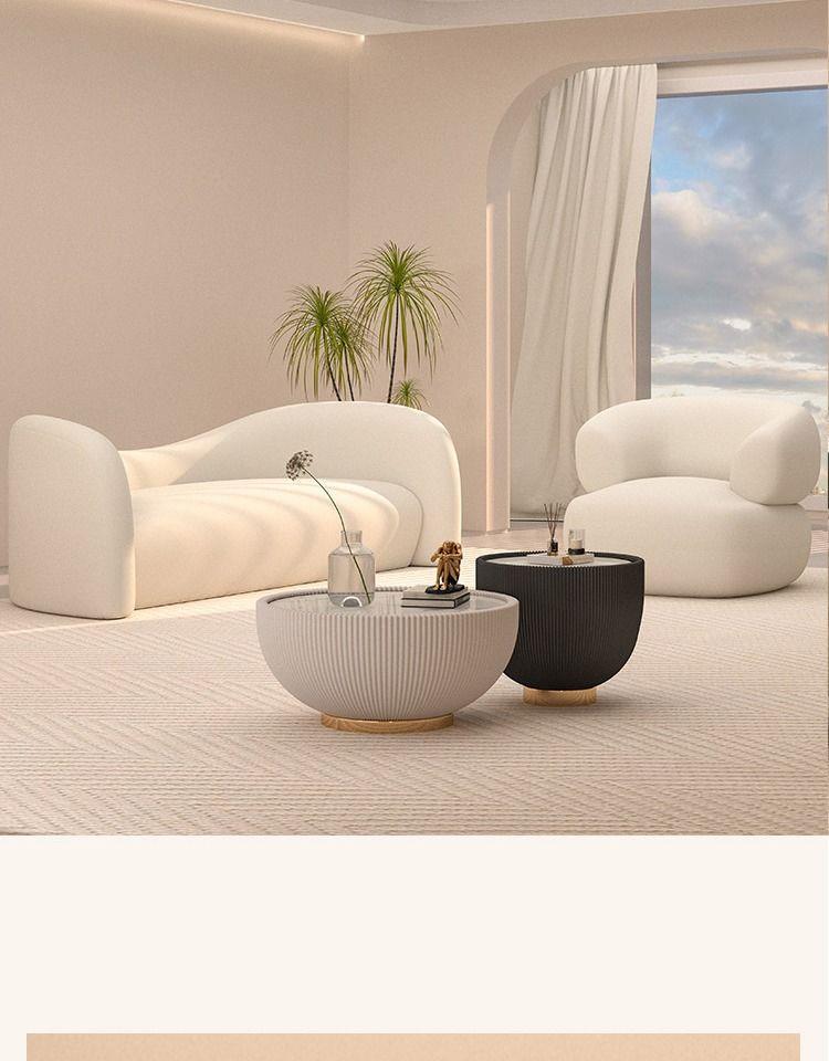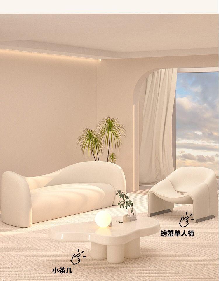 Đẹp sáng tạo thẩm mỹ viện sang trọng hiện đại tối giản cửa hàng quần áo màu kem bán đảo cong vải sofa phòng khách căn hộ nhỏ