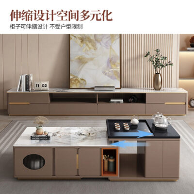 Đẹp sang trọng hiện đại phiến đá kung fu bàn trà sàn phòng khách tủ tủ trà đa chức năng kính thiên văn tích hợp bàn trà tủ tivi kết hợp