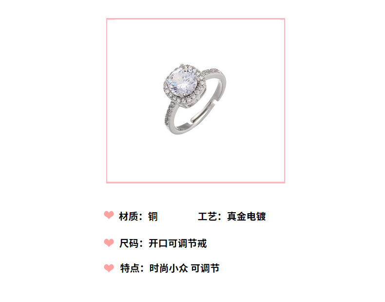 Đẹp sang trọng phong cách mới hình vuông zirconium đầy đủ kim cương mở cho phụ nữ theo phong cách Hàn Quốc thiết kế thời trang cảm giác có thể điều chỉnh đồ trang sức mạ vàng thật