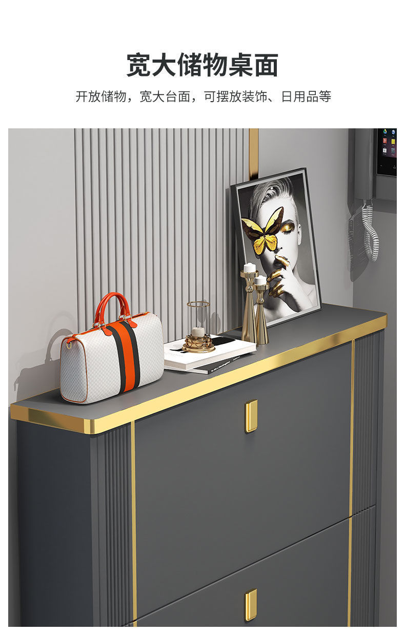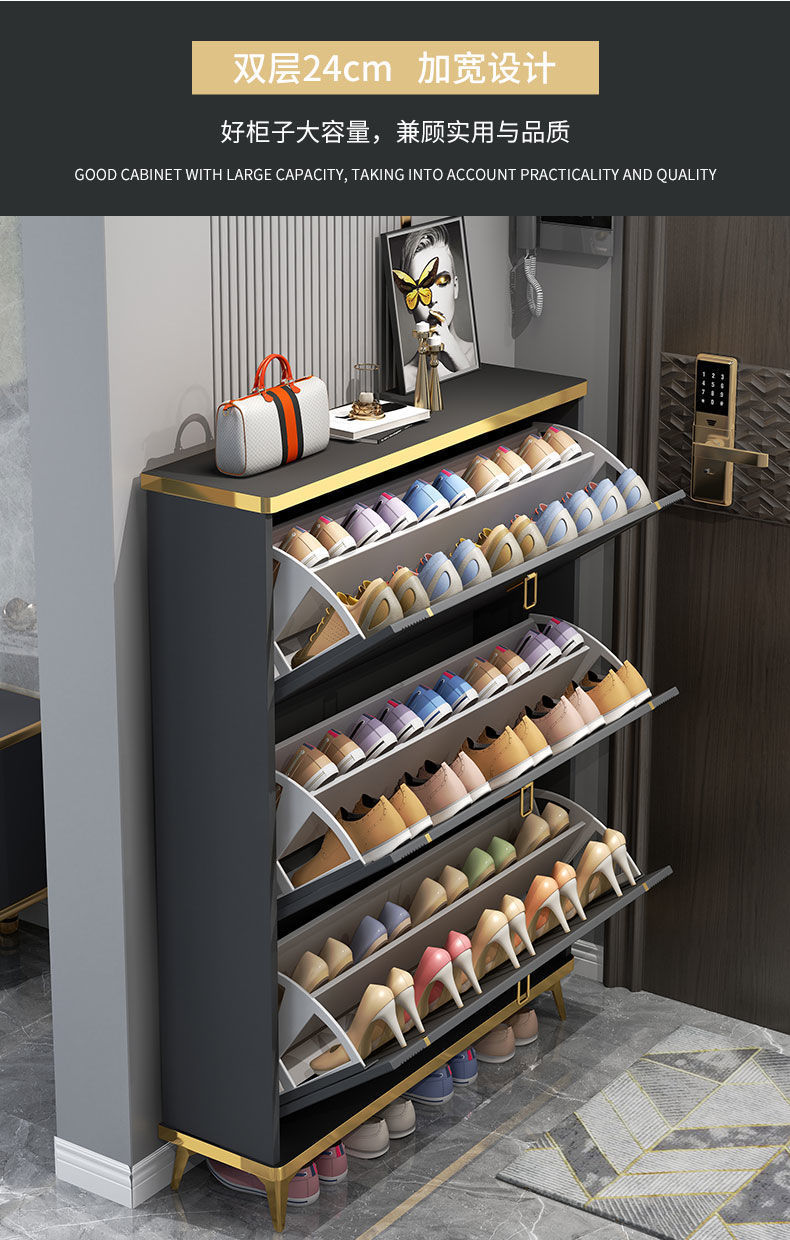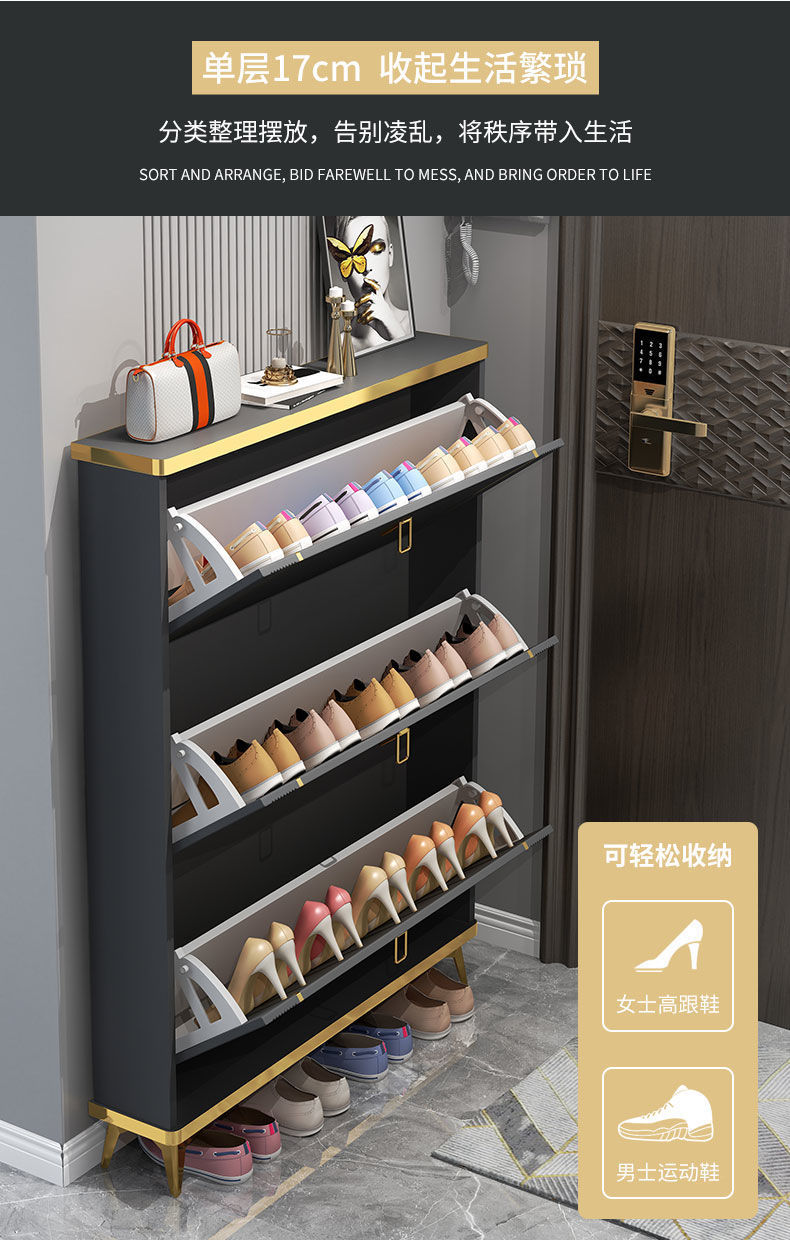 Đẹp sang trọng siêu mỏng thùng đựng giày tủ giày cửa xiên plug-in hiên tủ lối vào tủ đựng giày giả gỗ rắn giá giày lưới màu đỏ