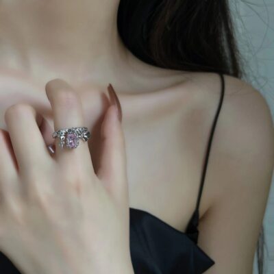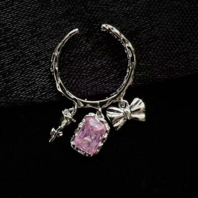 Đẹp sang trọng thích hợp ins phong cách đường bột kim cương zircon vòng mở nữ dây chuyền nơ ngọt ngào mát mẻ tinh tế nhẫn ngón tay trỏ