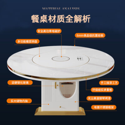 đẹp Sang Trọng Tích Hợp Bàn Xoay Đá Bàn Ăn Kết Hợp Ghế Nhỏ gia đình Đa Năng Bếp Cảm Ứng Bàn Ăn Bàn Tròn Biến Đổi