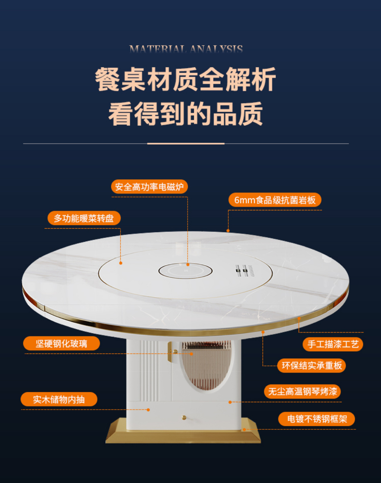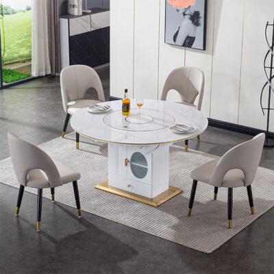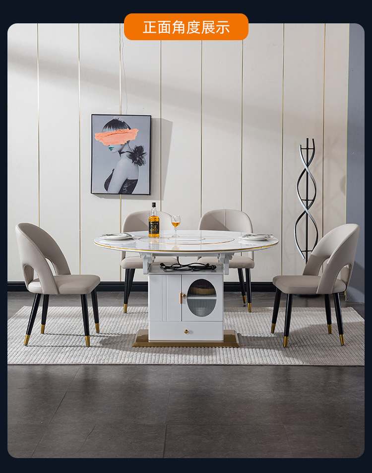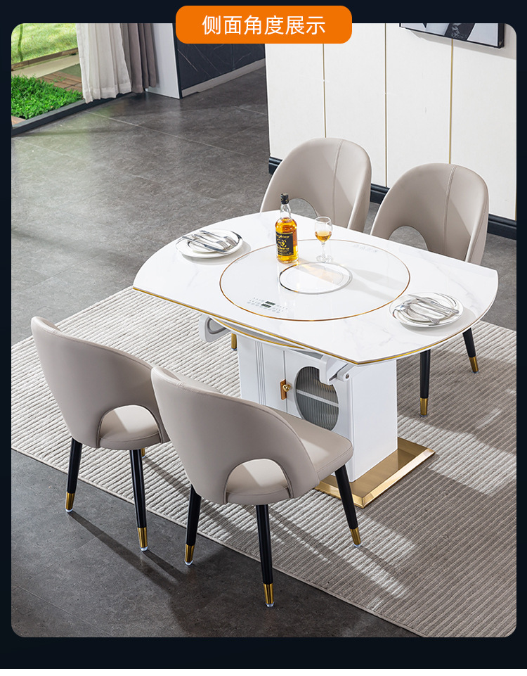 đẹp Sang Trọng Tích Hợp Bàn Xoay Đá Bàn Ăn Kết Hợp Ghế Nhỏ gia đình Đa Năng Bếp Cảm Ứng Bàn Ăn Bàn Tròn Biến Đổi