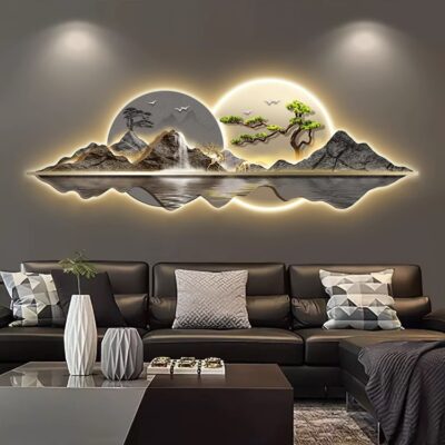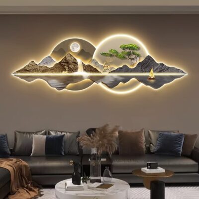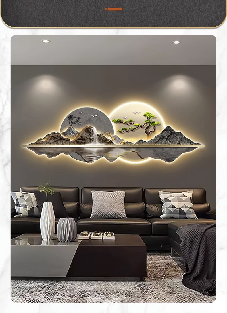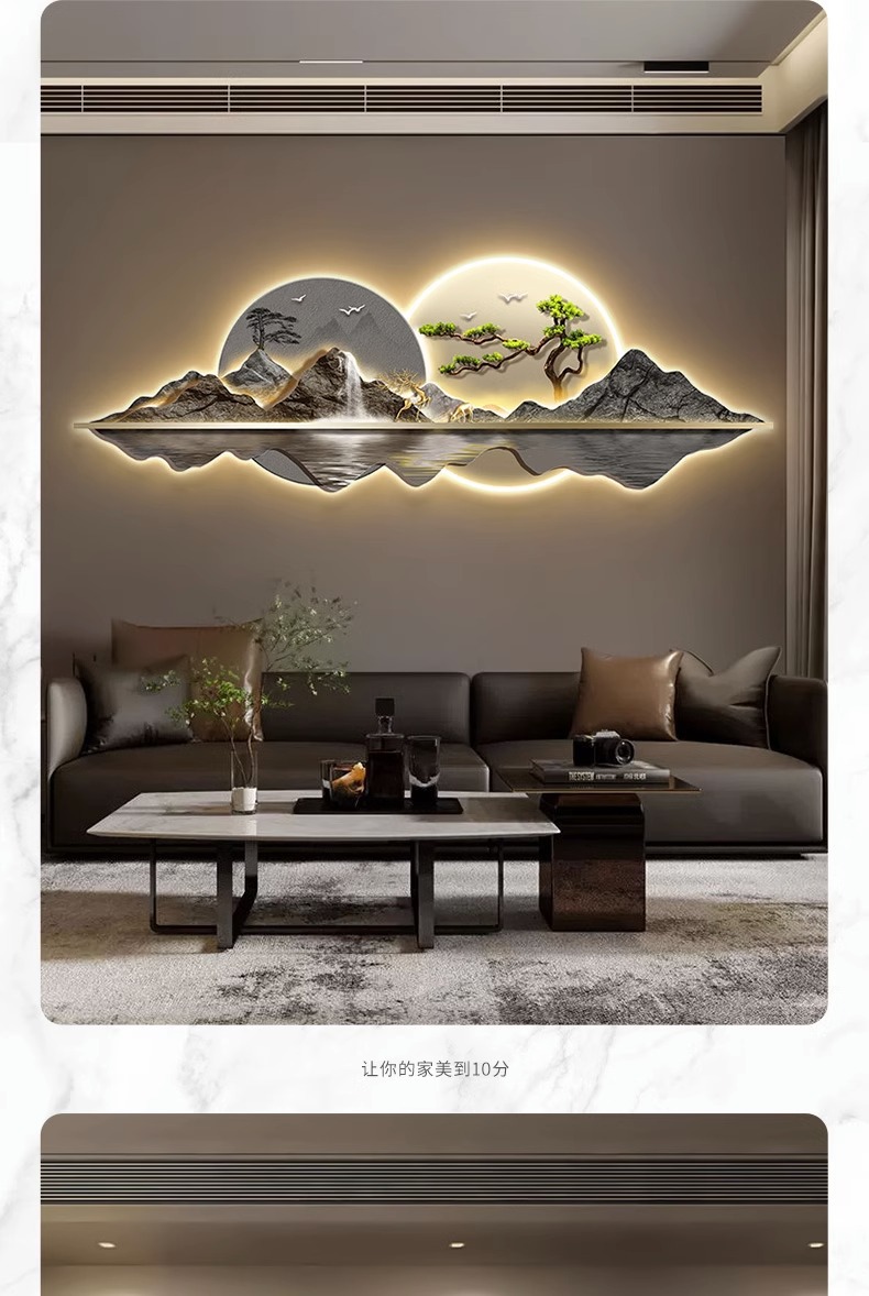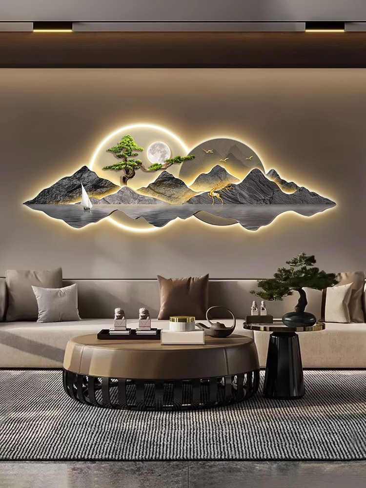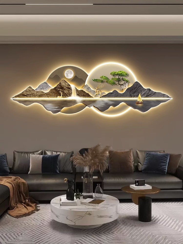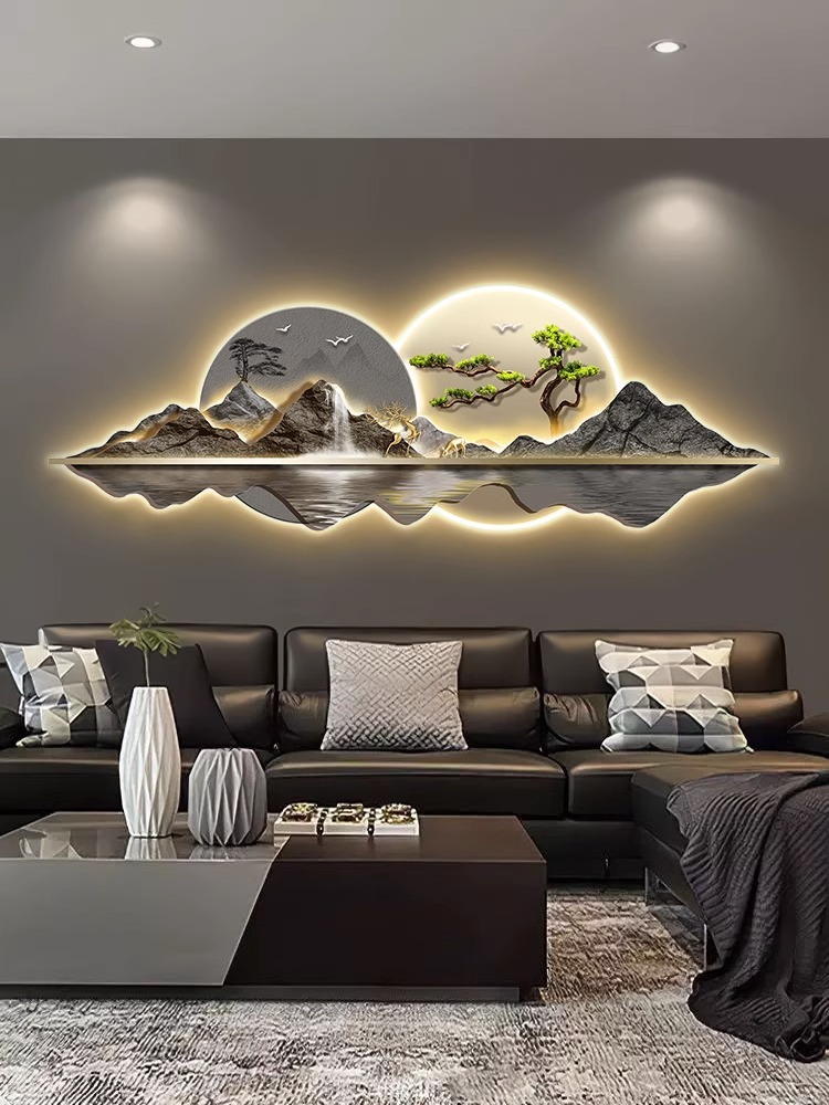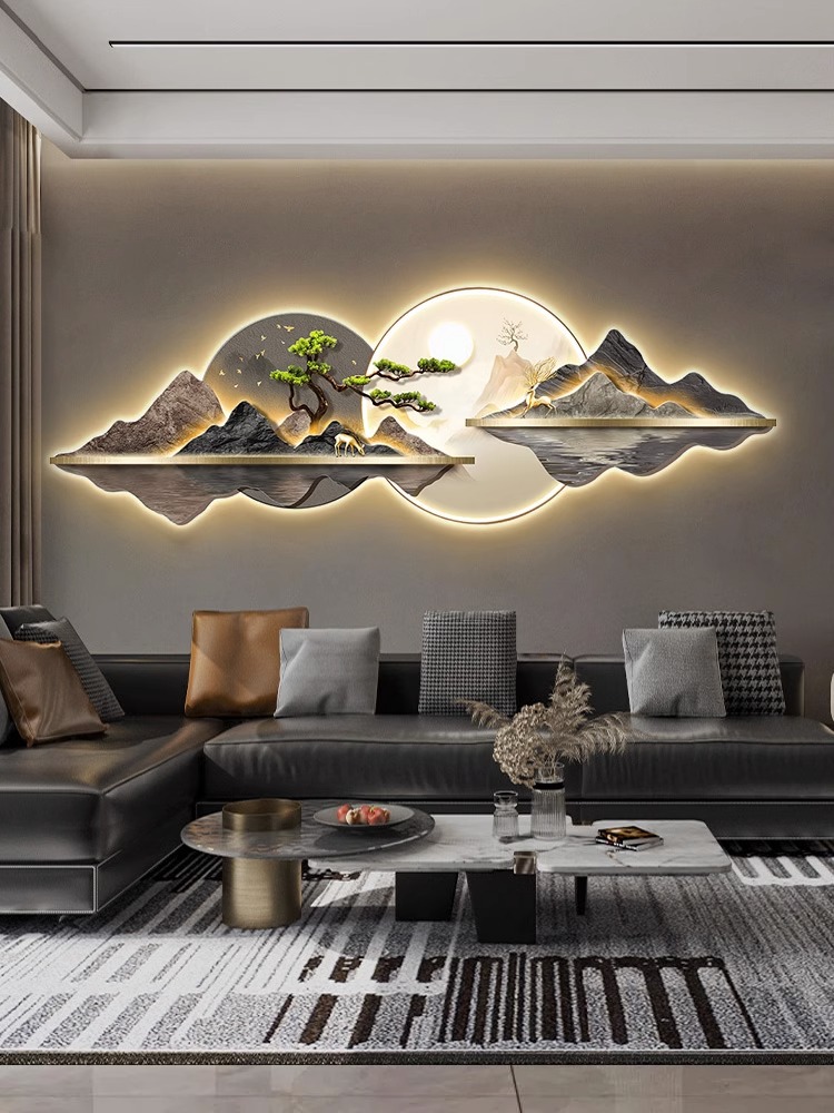 Đẹp sang trọng trang trí phòng khách tranh jijifeng phong cảnh mới bức tranh tường sofa nền tường treo tranh cao cấp cảm giác đèn tường phát sáng