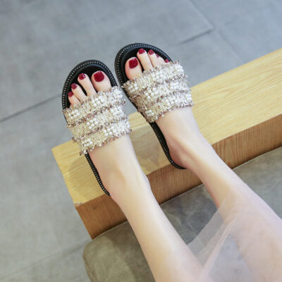 Dép Xỏ Ngón Thời Trang Hàn Quốc Mùa Hè 2023 Mới Ngọc Trai Kim Sa Lấp Lánh Xăng Đan Tất Cả Áo Khoác Ngoài Size Lớn Dép Đi Trong Nhà