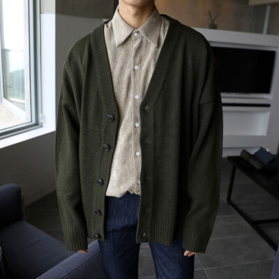 Dệt Kim Áo Khoác Cardigan Nam Phong Cách Hàn Quốc Rời Cổ Điện Đơn Màu Áo Len Thu Đông Áo Khoác Nam