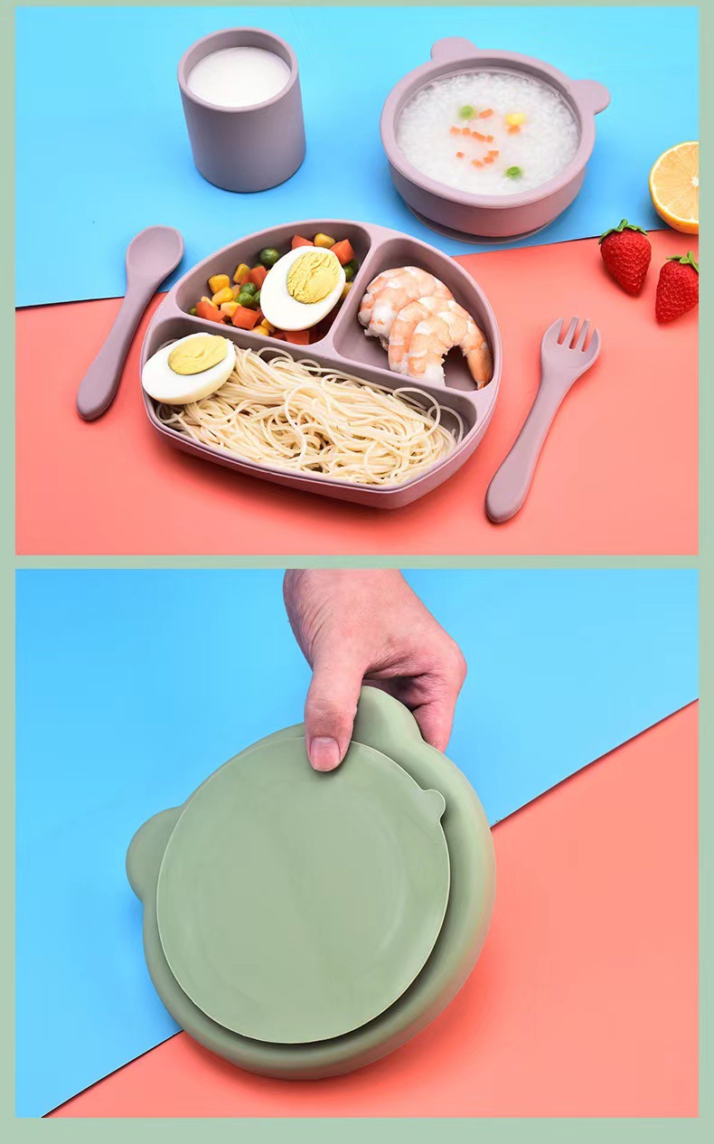 Đĩa ăn cho bé, đĩa lưới, cốc hút, thực phẩm bổ sung một mảnh cho bé, bát silicon, bộ đồ ăn trẻ em, bán buôn