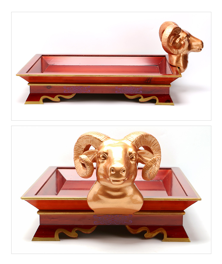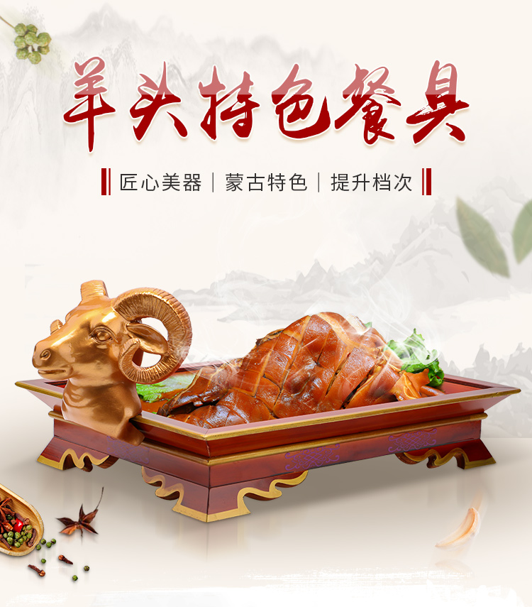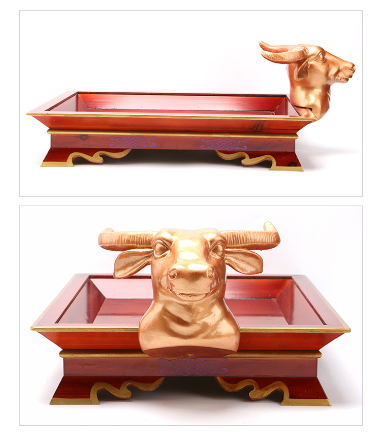 Đĩa bằng gỗ , đầu trâu, phong cách đặc trưng của người Mông Cổ.