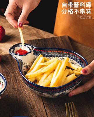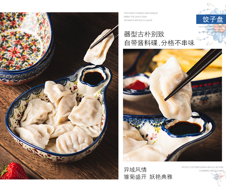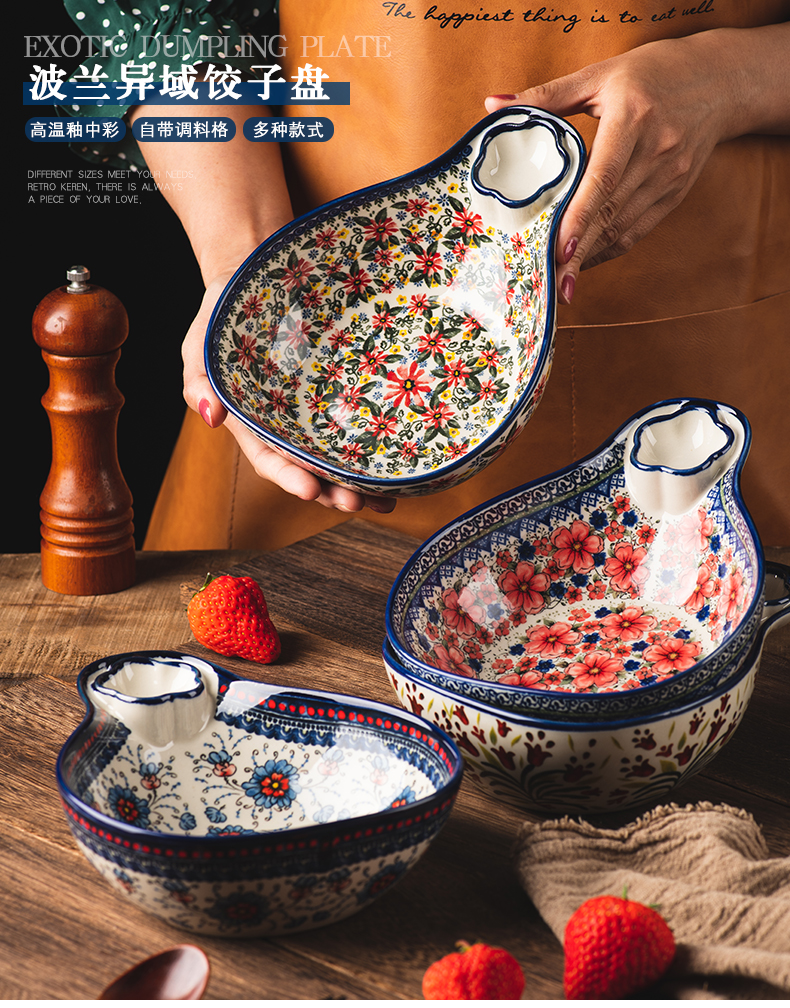 Đĩa bánh bao có ô đựng dấm , làm bằng gốm sứ.