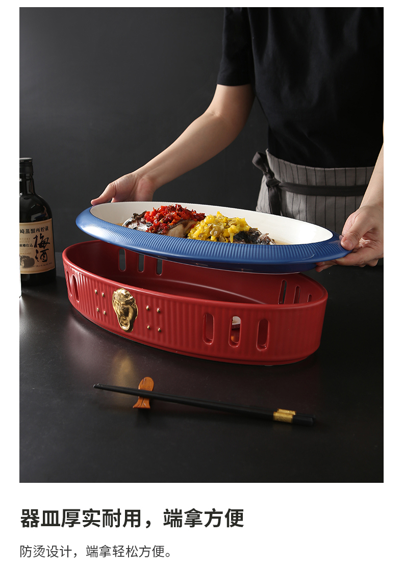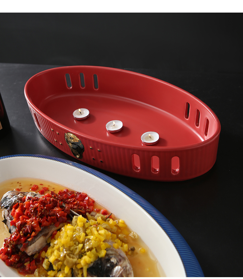 Đĩa dài 2 tầng giữ lửa liu diu cho món ăn.